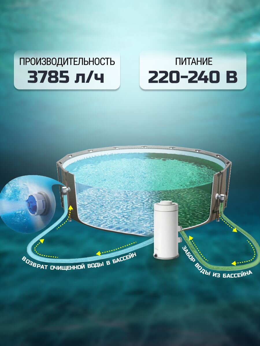 Подходит для стационарных, каркасных и надувных бассейнов.