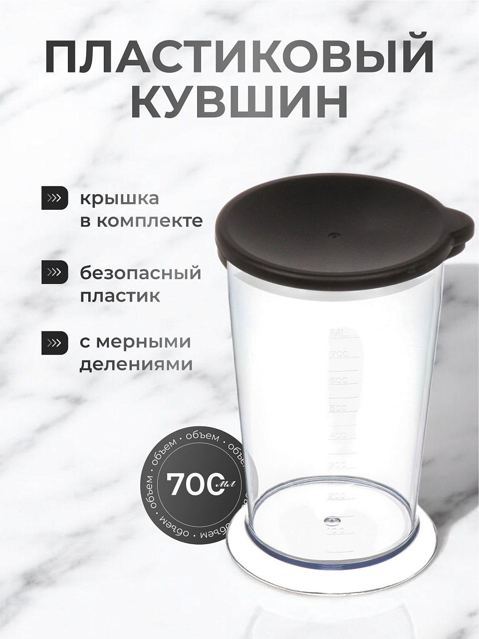 Комплектация "3 в 1" открывает широкие возможности для творческого подхода к приготовлению пищи. Блендерный набор включает погружную часть из металла, что гарантирует долговечность и устойчивость к износу. Пластиковый кувшин легкий и удобный в использовании, а импульсный режим позволяет добиться идеальной консистенции блюд.