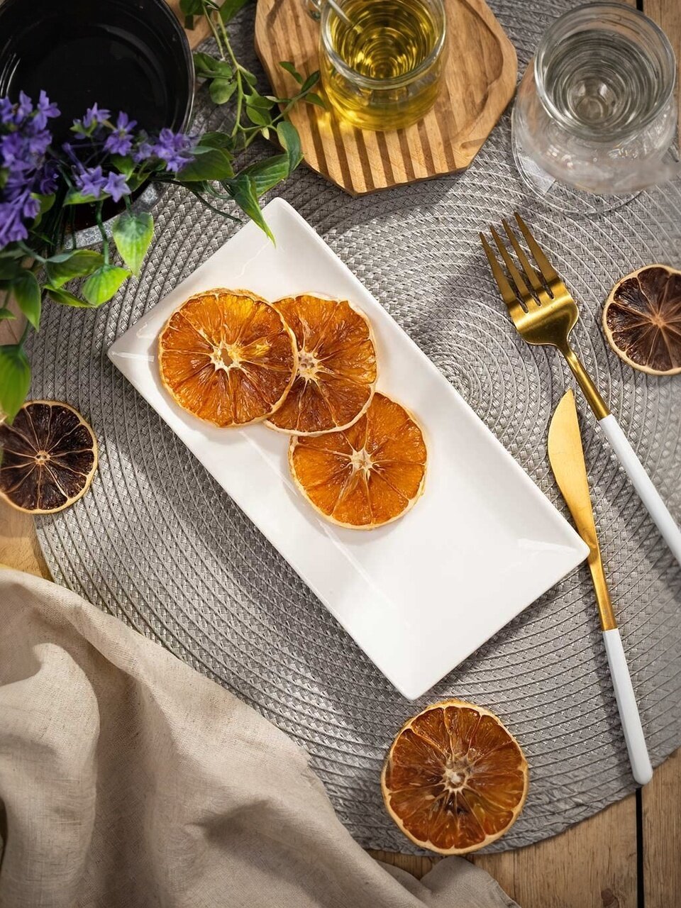 Длина блюда — 20 см, форма прямоугольная. Подходит для подачи закусок, фруктов, сыра, нарезки и сервировки на праздники.