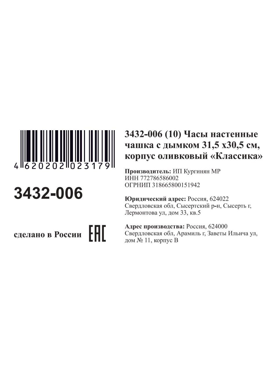 Вы можете приобрести «Часы настенные, кварцевые, 31,5х30,5 см, чашка с дымком, корпус оливковые, фигурные, Рубин, Классика, 3432-006» и другие товары в нашем интернет-магазине в Нижнем Новгороде по низким ценам и с бесплатным самовывозом.