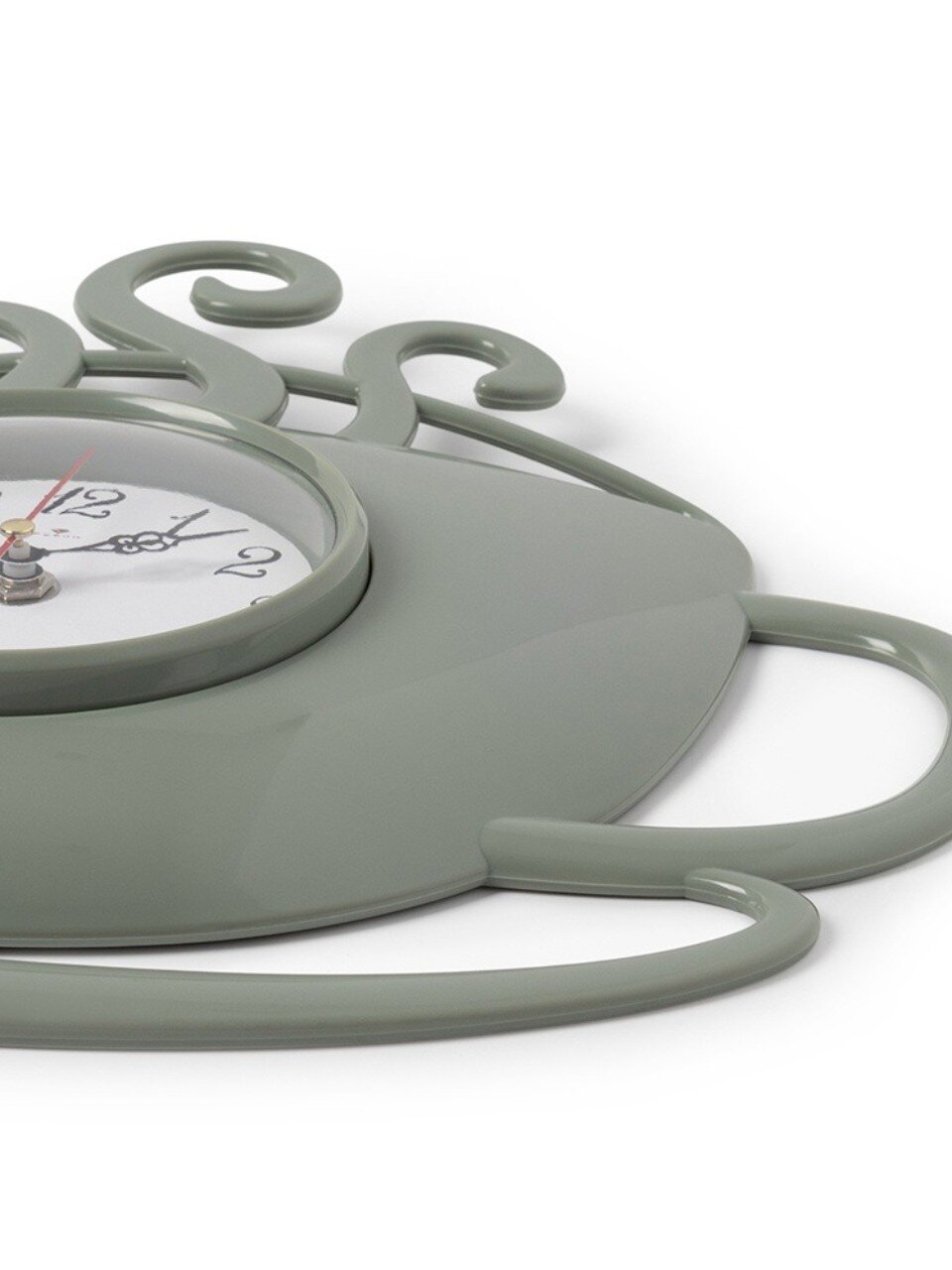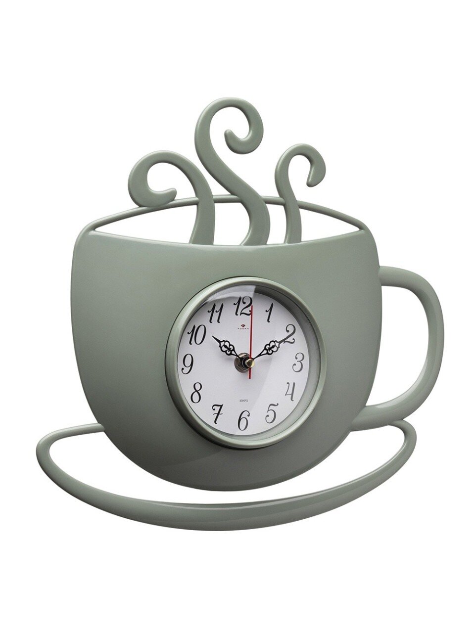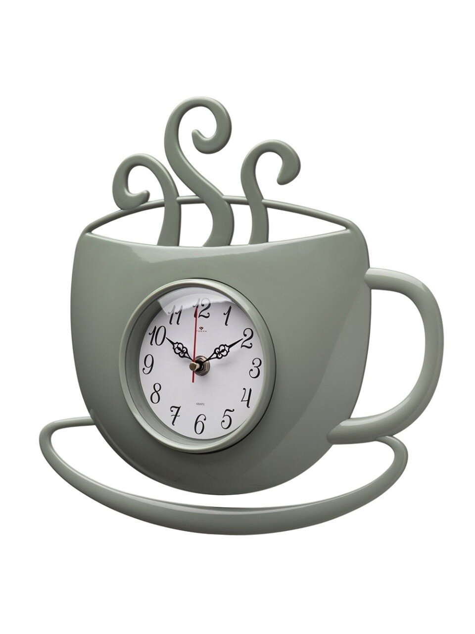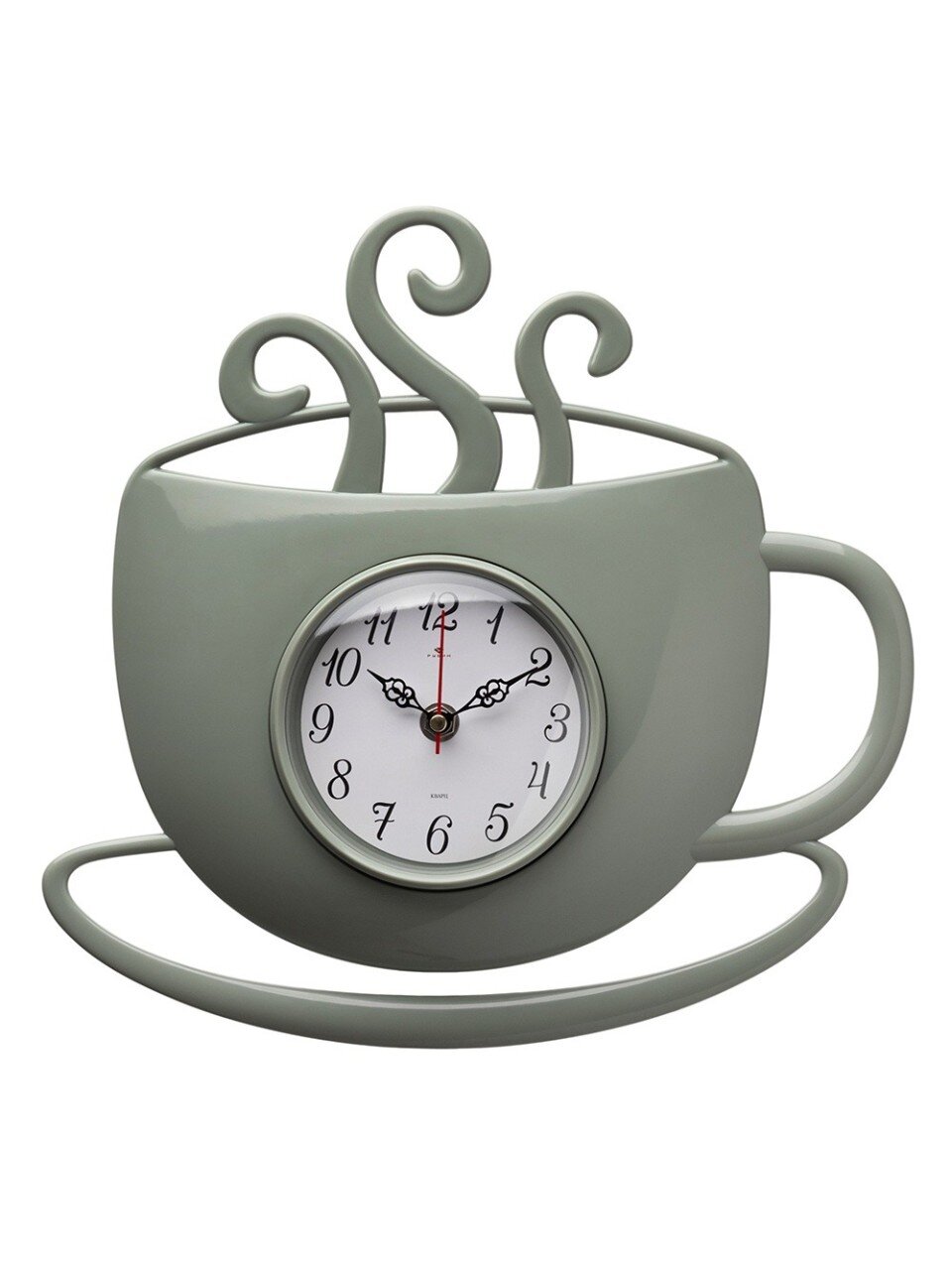 Стильные кварцевые настенные часы 31,5х30,5 см с оливковым корпусом и дизайном «чашка с дымком» — точность, уют и акцент в интерьере за разумную цену.