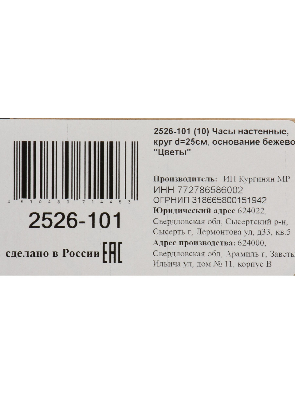 Вы можете приобрести «Часы настенные, кварцевые, 25 см, основание бежевое, круглые, Рубин, Цветы, 2526-101» и другие товары в нашем интернет-магазине в Липецке по низким ценам и с бесплатным самовывозом.
