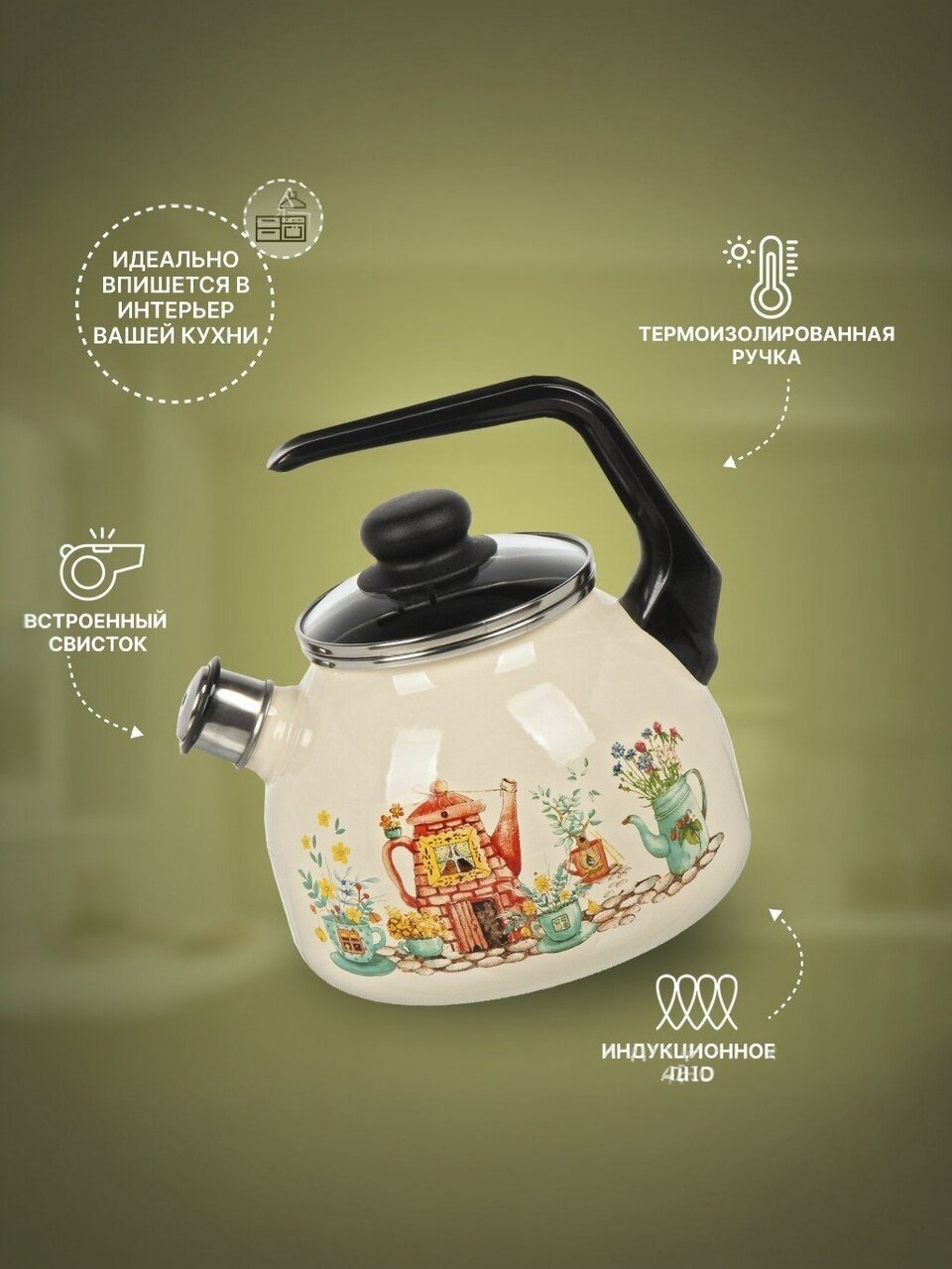 Вы можете приобрести «Чайник сталь, эмалированное покрытие, 3 л, со свистком, ручка консольная, СтальЭмаль, Чайный домик, индукция, слоновая кость, 4с209я» и другие товары в нашем интернет-магазине в Коврове по низким ценам и с бесплатным самовывозом.