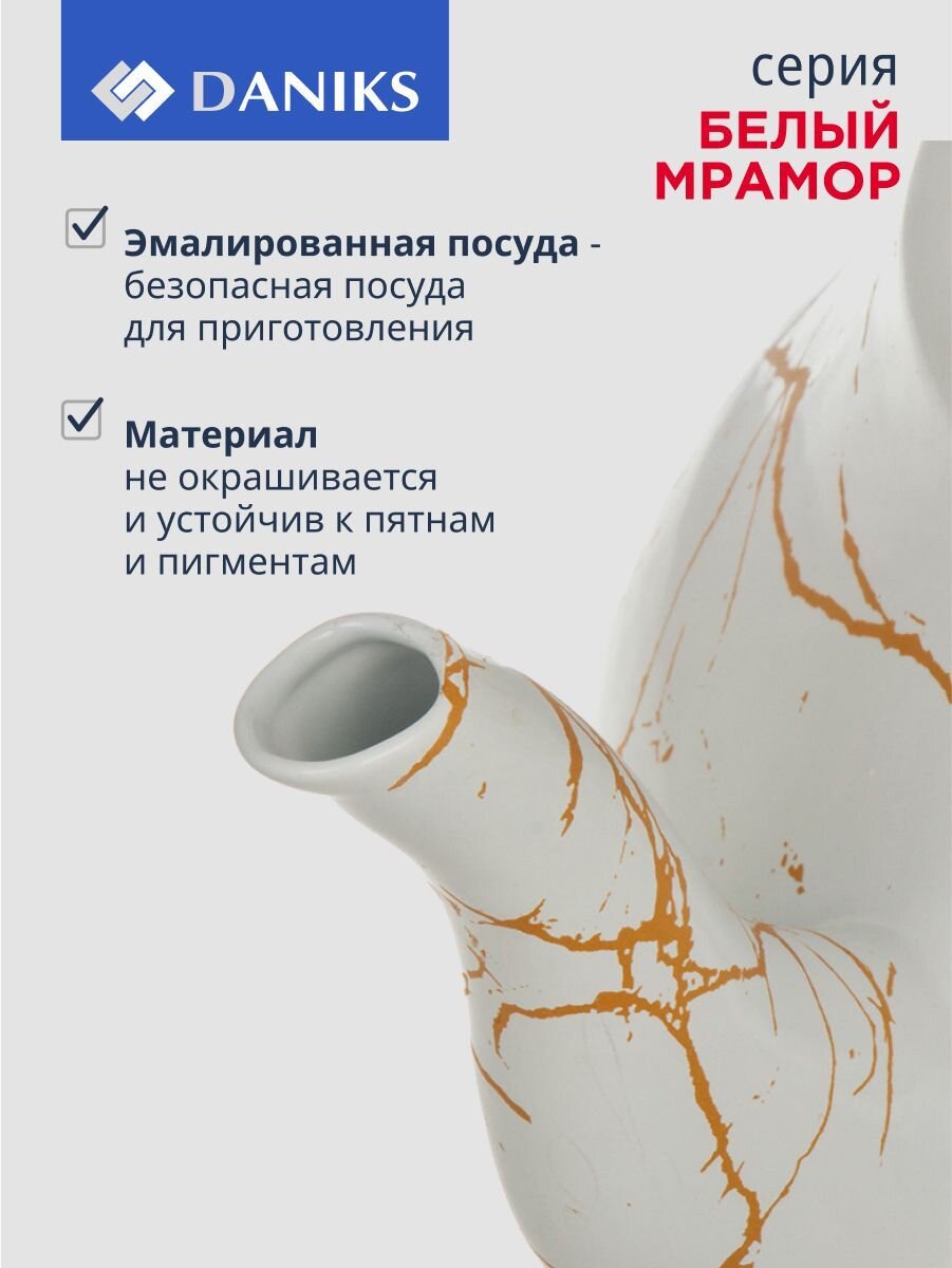 Закажите чайник Daniks «Белый мрамор» с гарантией 12 месяцев — получите надёжную посуду с быстрой доставкой и выгодной ценой прямо сейчас.