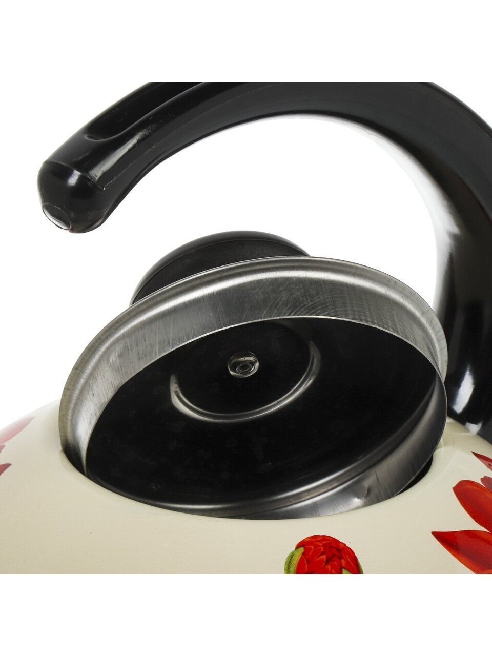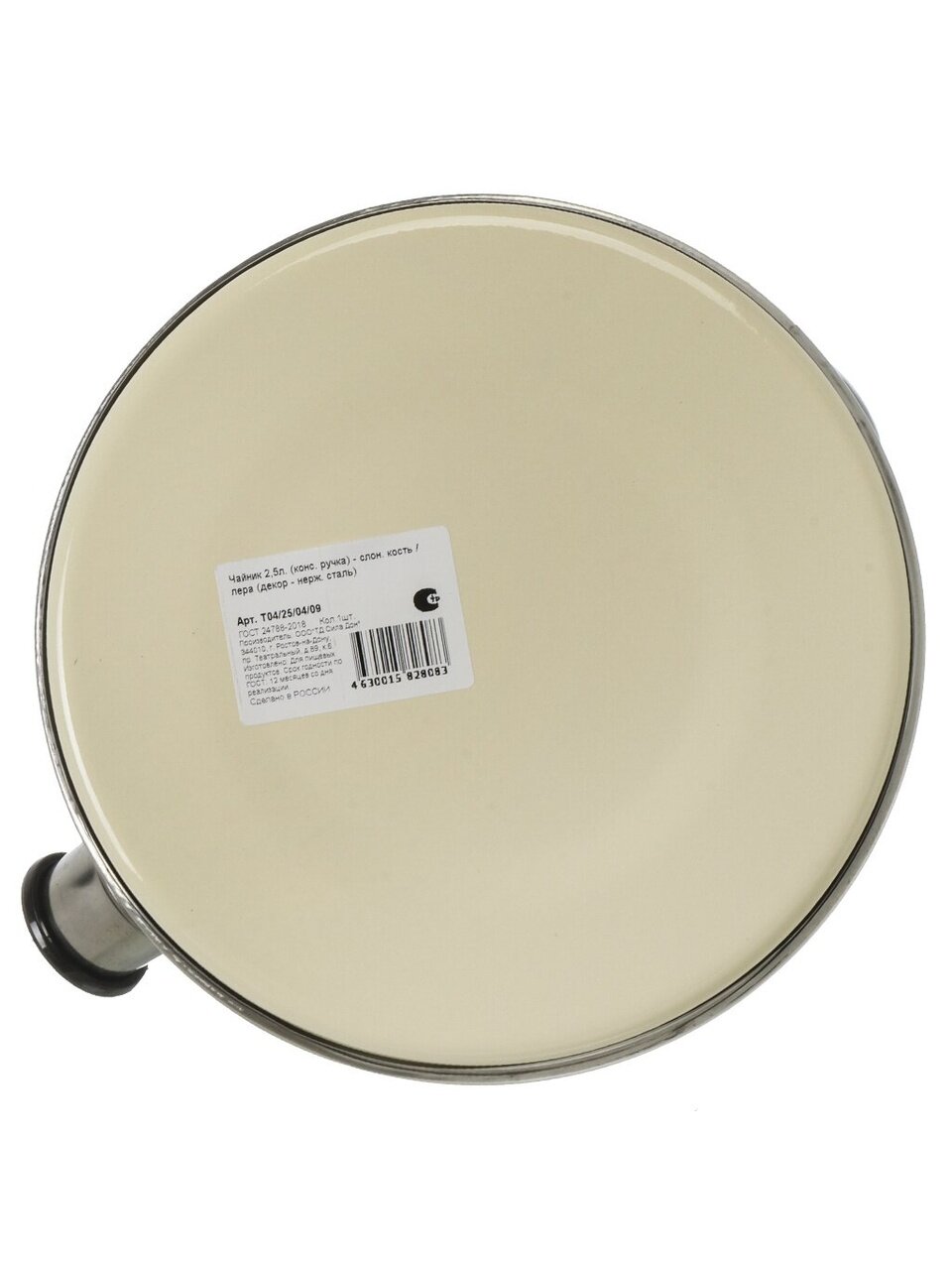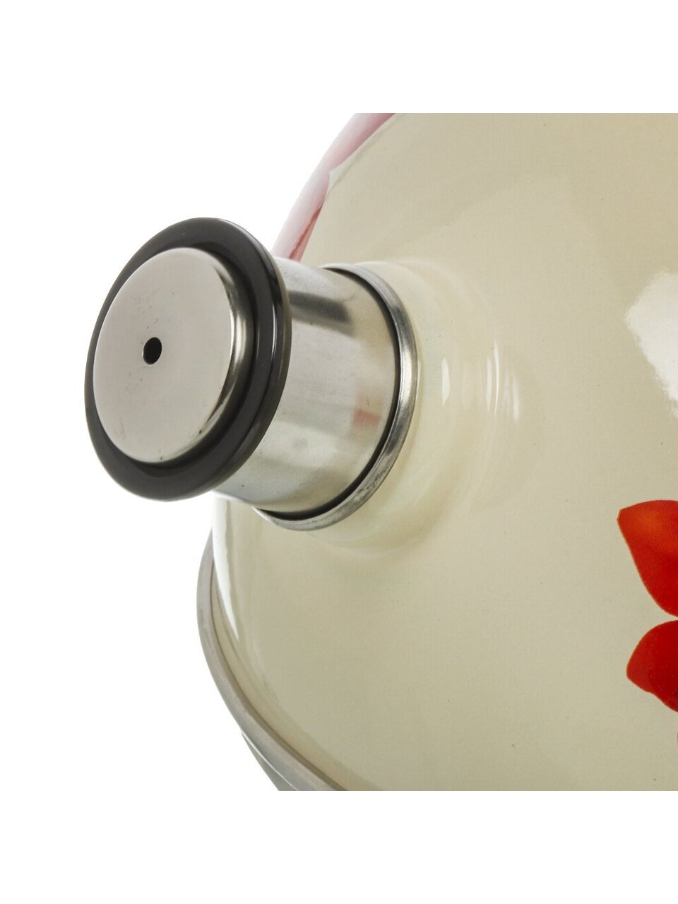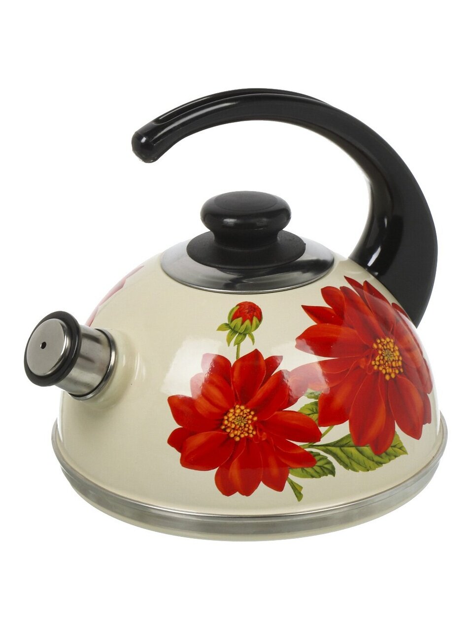 Чайник 2.5 л сталь с эмалированным покрытием и консольной ручкой: стиль “слоновая кость”, свисток, подходит для газовых и электрических плит. Недорого — для дома и дачи.