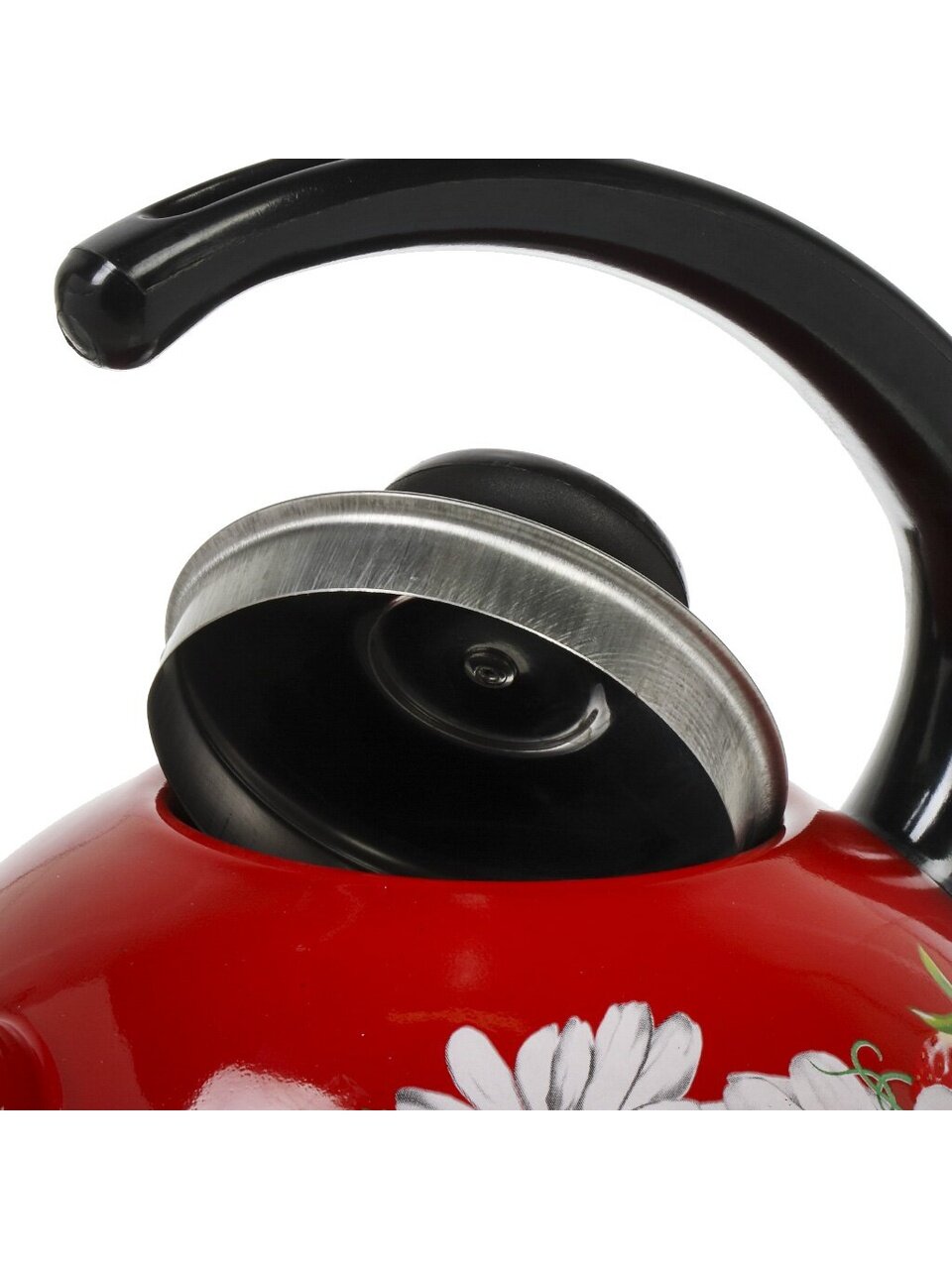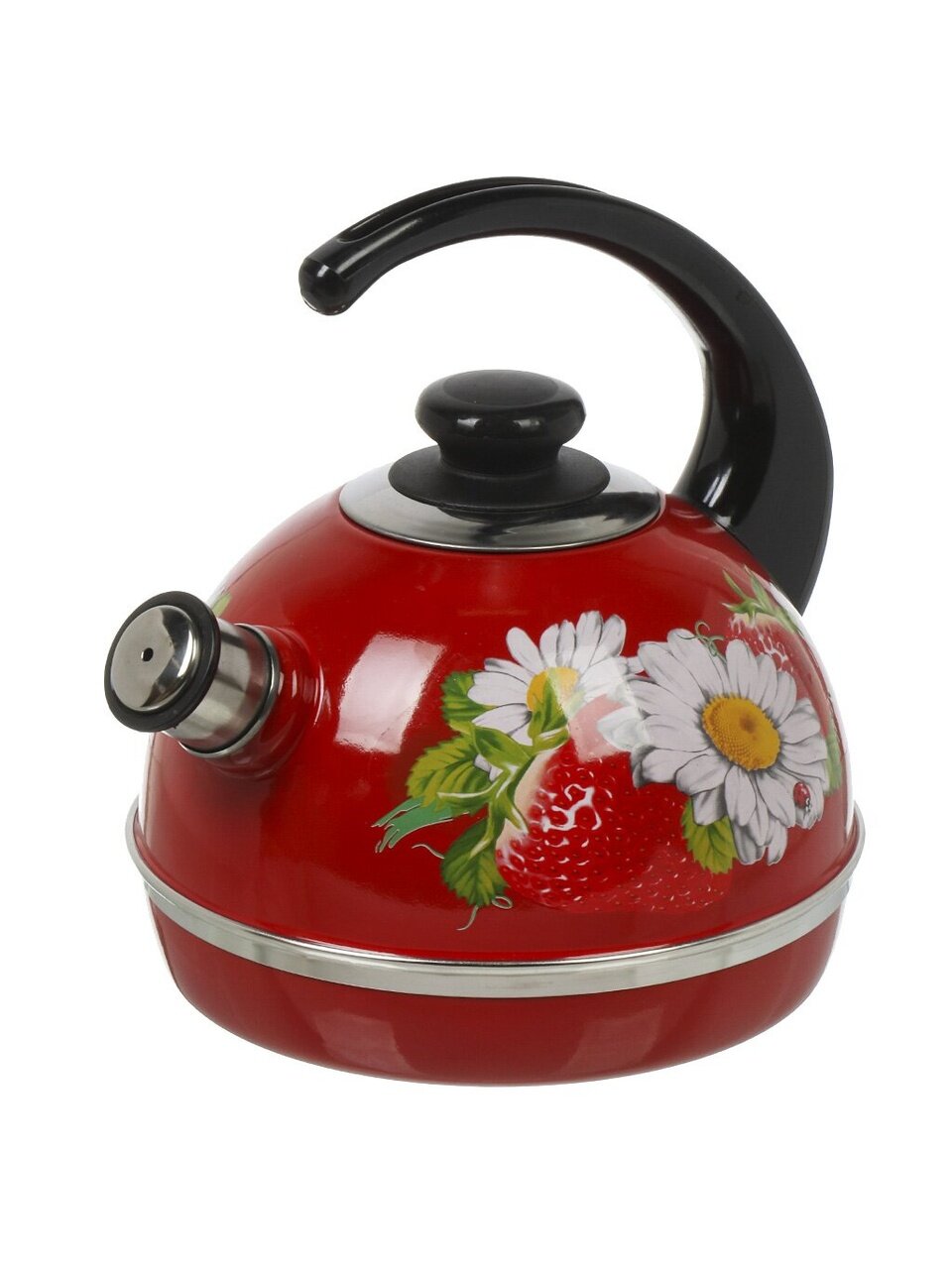 Чайник стальной с эмалированным покрытием 3.5 л «Клубника с ромашкой» — вместительный, долговечный и недорогой выбор для дома и дачи. Прочный корпус, стильный декор и свисток для безопасности.
