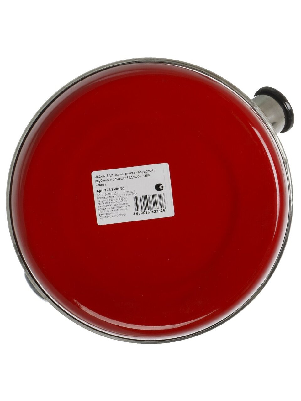 Вы можете приобрести «Чайник сталь, эмалированное покрытие, 3.5 л, со свистком, ручка консольная, Рубин, Клубника с ромашкой, бордовый, T04/35/01/05» и другие товары в нашем интернет-магазине в Липецке по низким ценам и с бесплатным самовывозом.