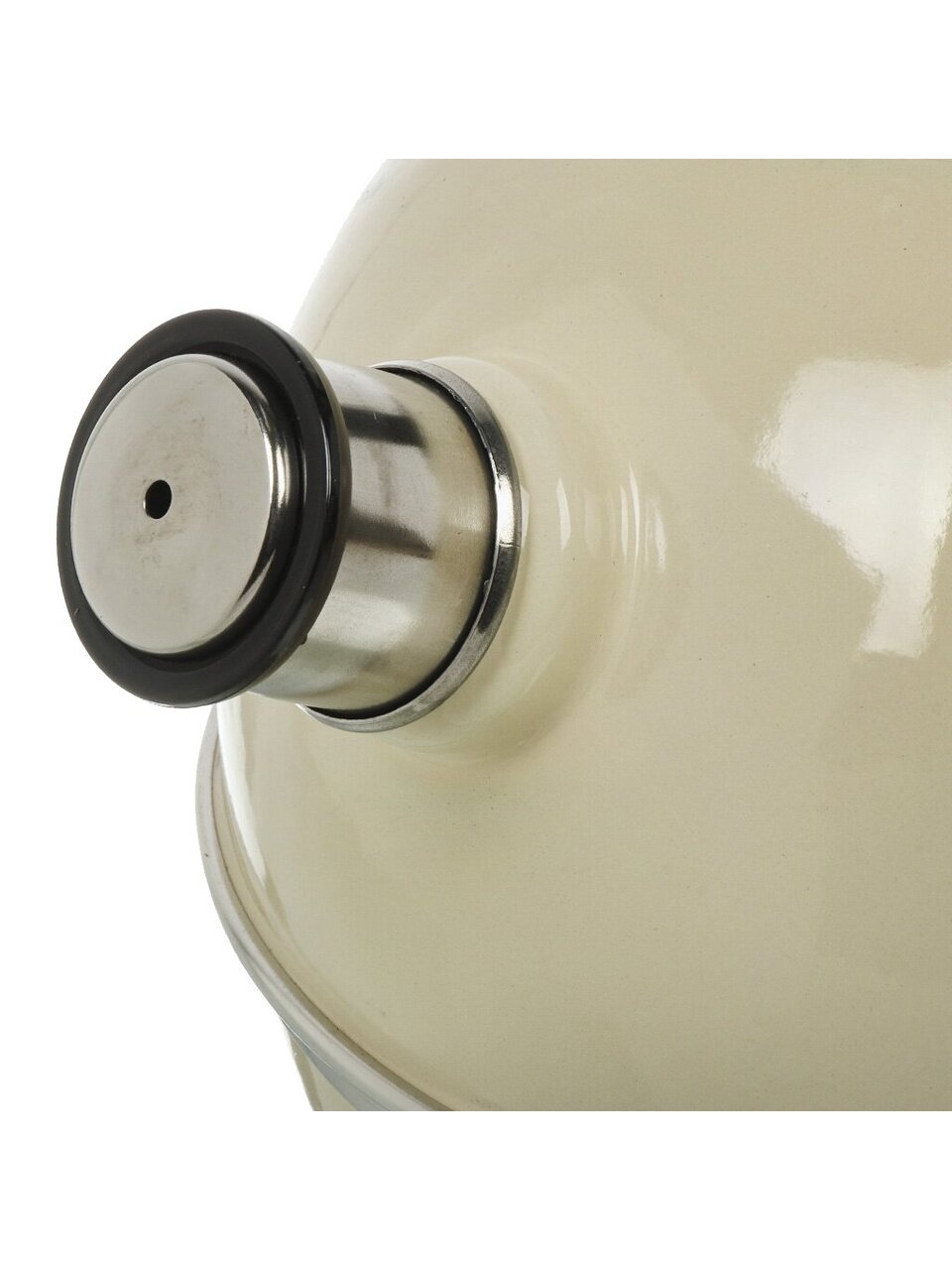 Чайник стальной эмалированный 3.5 л «Рубин Нарцисс» — это сочетание классического дизайна в цвете слоновая кость и современных стандартов безопасности. Благодаря толстому дну и прочному эмалированному покрытию чайник быстро закипает и легко очищается (можно мыть в посудомоечной машине), а консольная пластиковая ручка не нагревается даже при длительном кипячении. Свисток поможет не забыть о закипающей воде — удобно для семей с детьми и занятых пользователей.