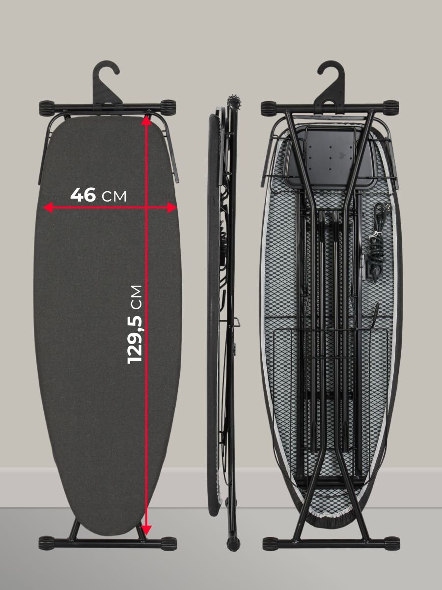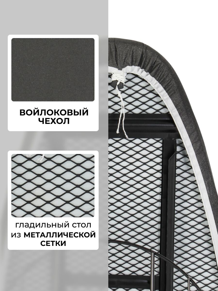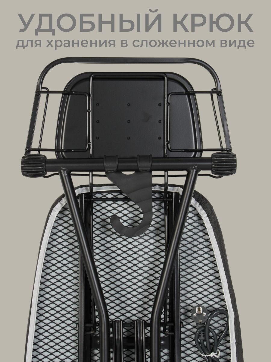 Идеальное решение для комфортной и быстрой глажки — доска гладильная 129.5х46 см Марья Искусница с увеличенной шириной рабочей поверхности. Современный дизайн, продуманная эргономика и расширенный функционал делают ее незаменимым помощником для дома и дачи. Гладильная доска подходит для любых типов утюгов и парогенераторов благодаря встроенной розетке и выдвижной полке для утюга, что делает процесс глажки максимально удобным и безопасным. Черный цвет придаёт изделию стильный и лаконичный внешний вид, гармонично вписываясь в любой интерьер.