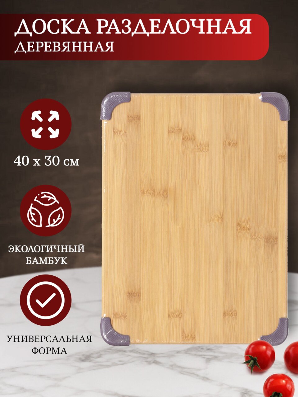 Разделочная доска из бамбука - это незаменимый аксессуар на любой кухне. Она изготовлена из натурального бамбука, обеспечивающий длительный срок эксплуатации изделий. В отличие от других досок (пластик, бук или береза) эта доска не только легко моется и не скапливает бактерии, но и не расслаивается при регулярном использовании.