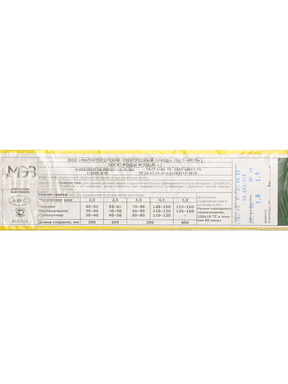 Диаметр 2 мм, вес 1 кг, основной тип покрытия, материал — металлический сплав, упаковка — коробка. Электроды предназначены для ручной дуговой сварки нержавеющих сталей, не подходят для всех пространственных положений.