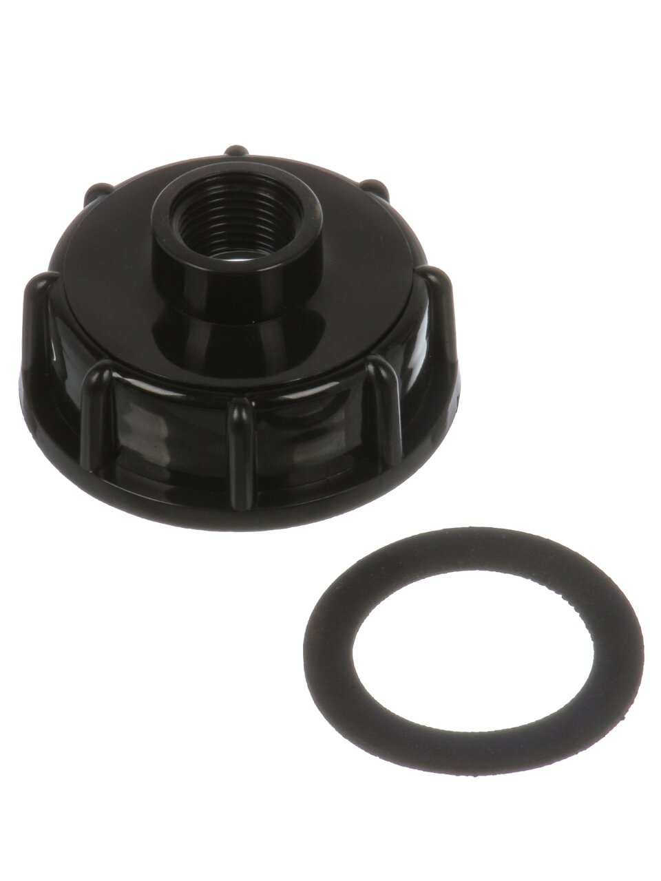 Диаметр крышки — 60 мм, резьба внутренняя 1/2". Подходит к большинству стандартных еврокубов с аналогичной горловиной.