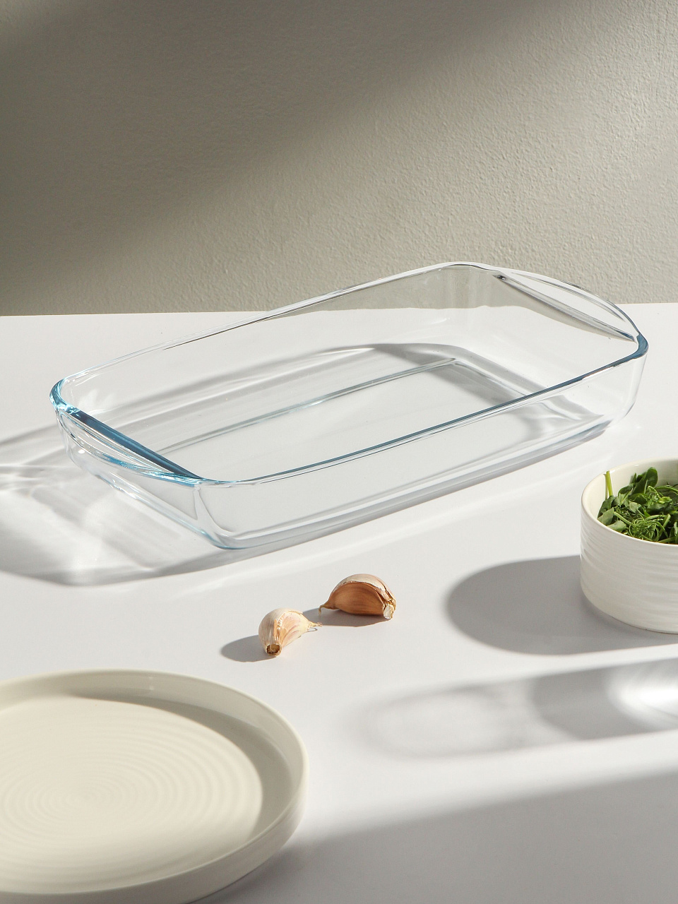 - Оптимальный объём 2 л, прямоугольная форма 19×33,6×5 см — удобно для семейных ужинов и порционных блюд