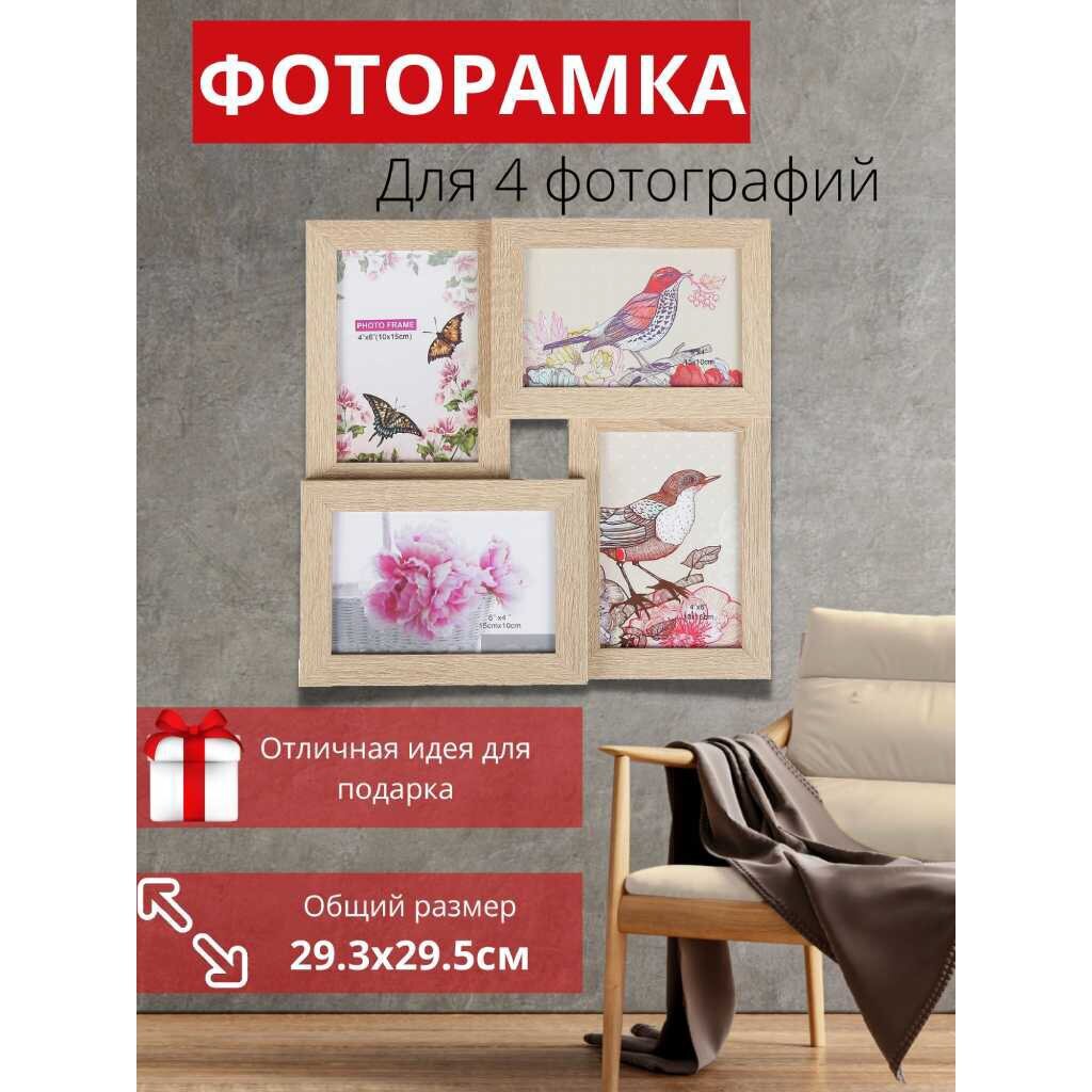 Вы можете приобрести «Фоторамка-коллаж на 4 фото, 29.25х29.5 см, бежевое дерево, Y3-1552» и другие товары в нашем интернет-магазине в Железногорске по низким ценам и с бесплатным самовывозом.