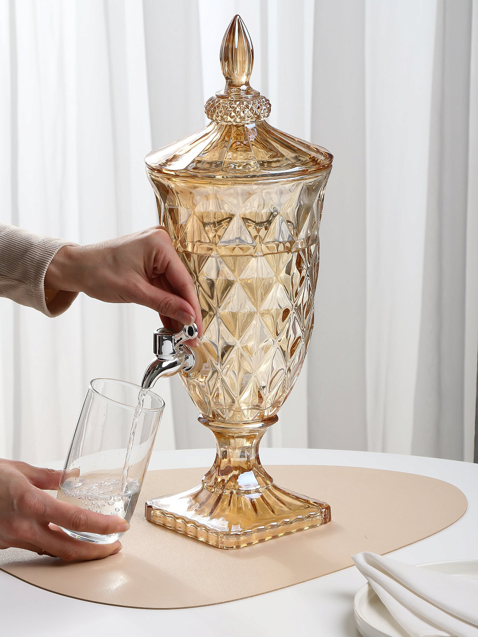 Лимонадница стекло 2 л «Мёд» — это современное решение для подачи лимонадов, морсов, компотов и даже коктейлей. Благодаря объёму 2 литра и прочному стеклу, этот диспенсер для напитков подходит для семейных ужинов, пикников и праздничных застолий. Золотой цвет гармонирует с любым интерьером, а стекло не выделяет посторонних запахов и сохраняет вкус напитков.