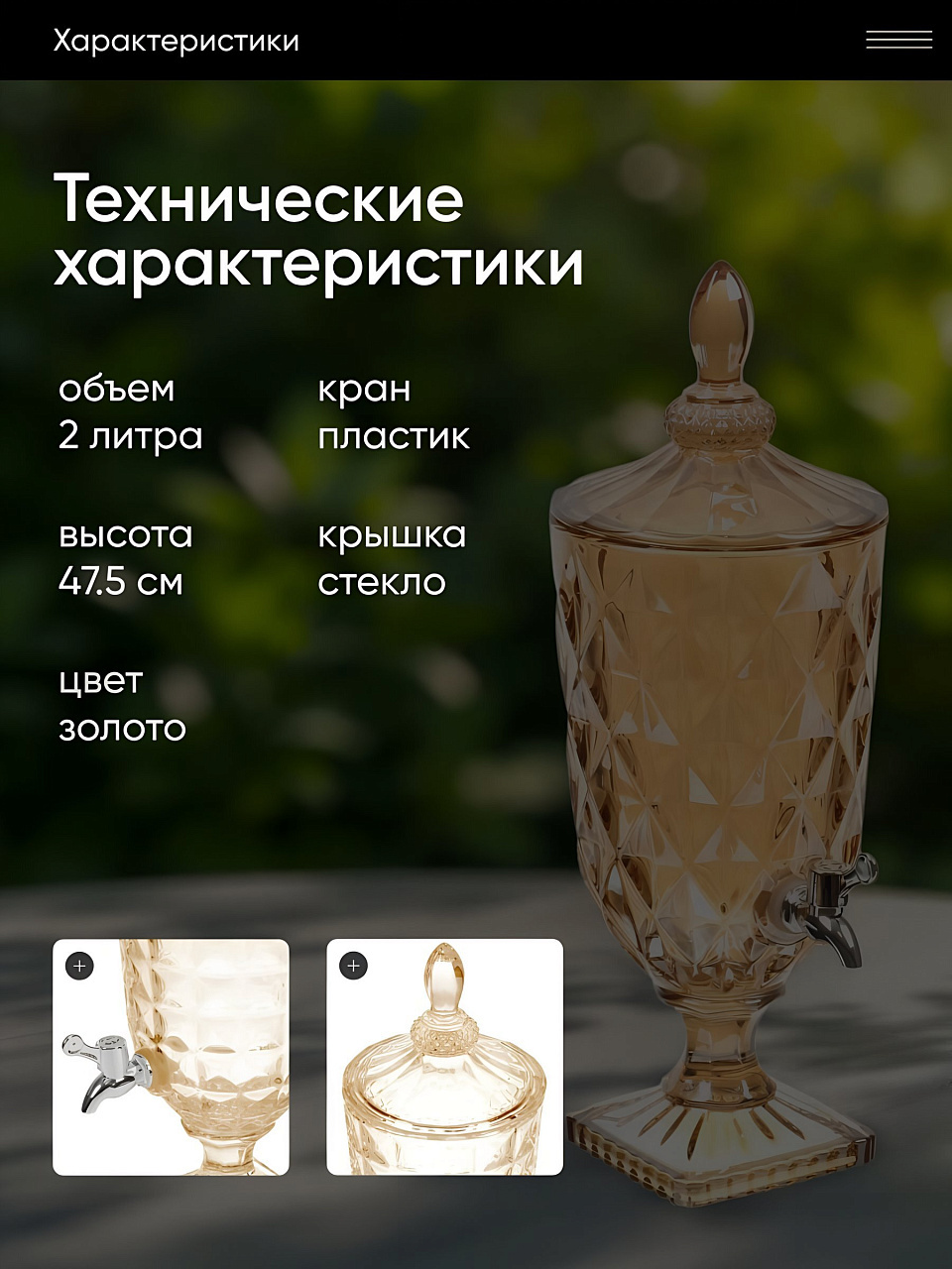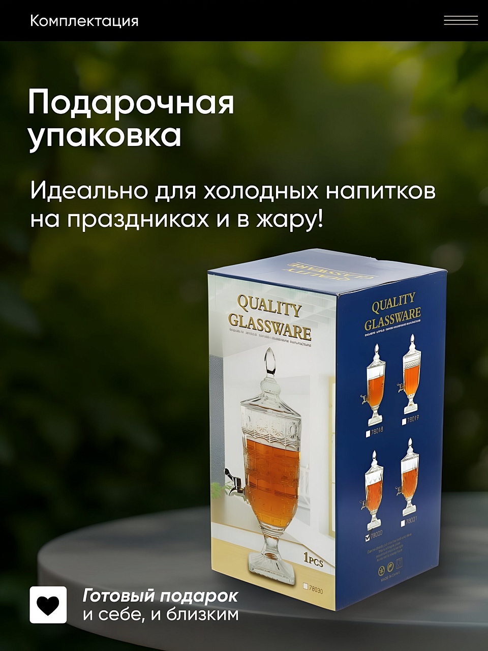 По сравнению с аналогами из пластика, стеклянная лимонадница не впитывает запахи, устойчива к царапинам и проста в уходе. Модель «Мёд» Y4-5409 — оптимальный выбор, если нужен вместительный и эстетичный диспенсер для дома или дачи.