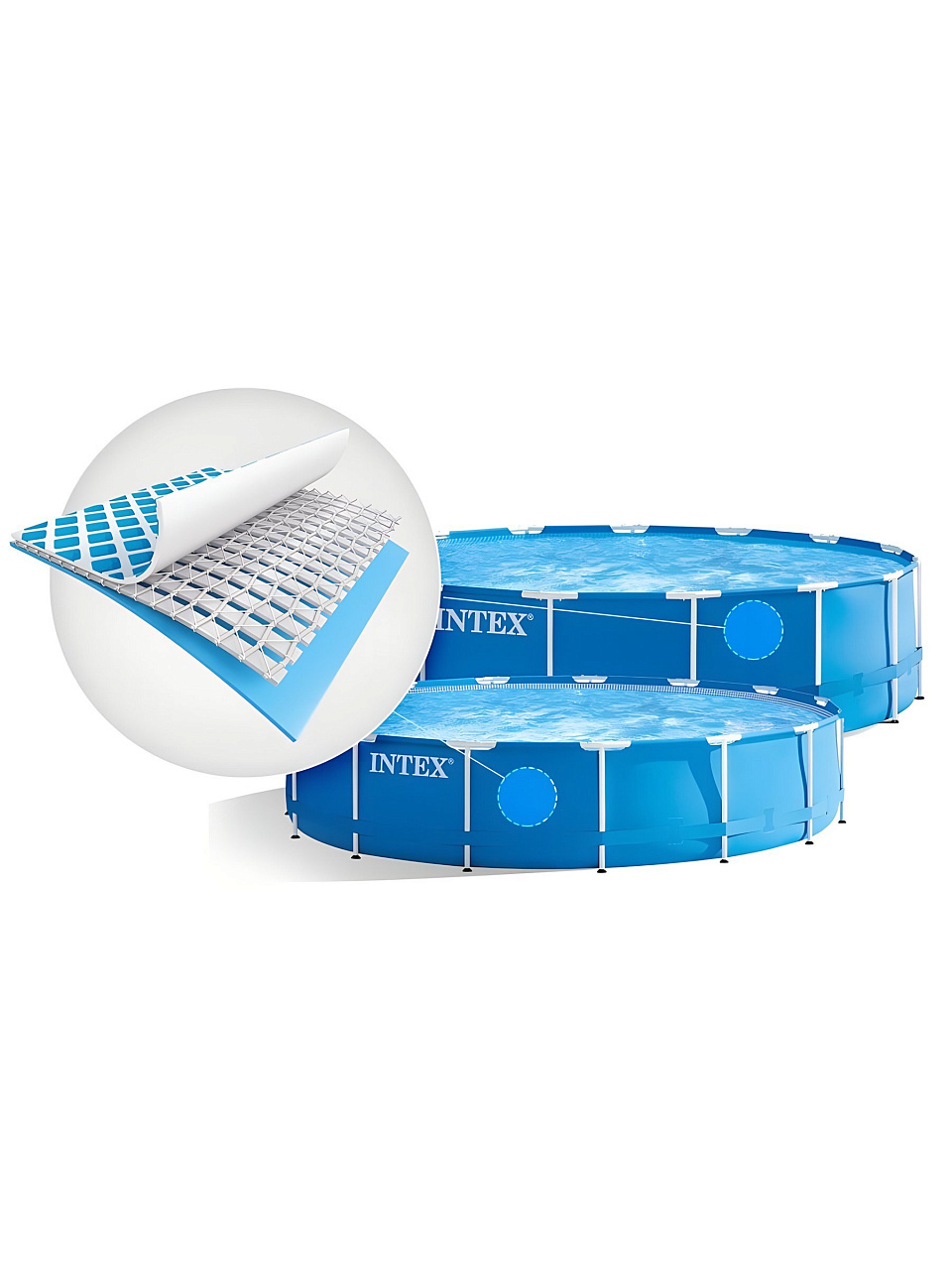 - Удобство использования: форма бассейна поддерживается лентой из полипропилена, что делает его устойчивым и безопасным.