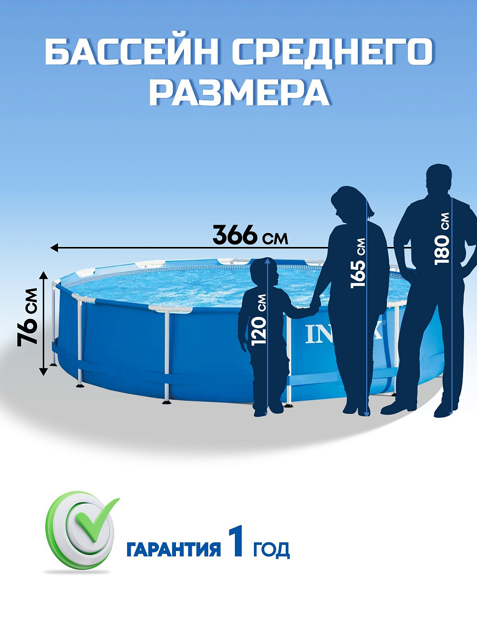 - Оптимальный размер: средний размер бассейна идеально подходит для дачи и семейного отдыха.