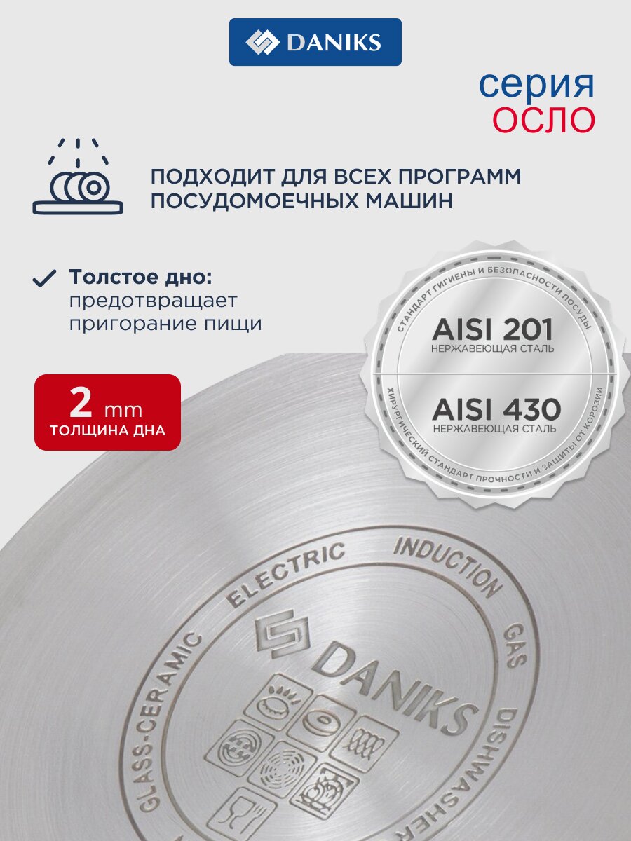 Кастрюля Daniks Осло 2.9 л из нержавеющей стали с крышкой: оптимальный выбор для индукции, быта и подарка — долговечность, комфорт, современный дизайн.