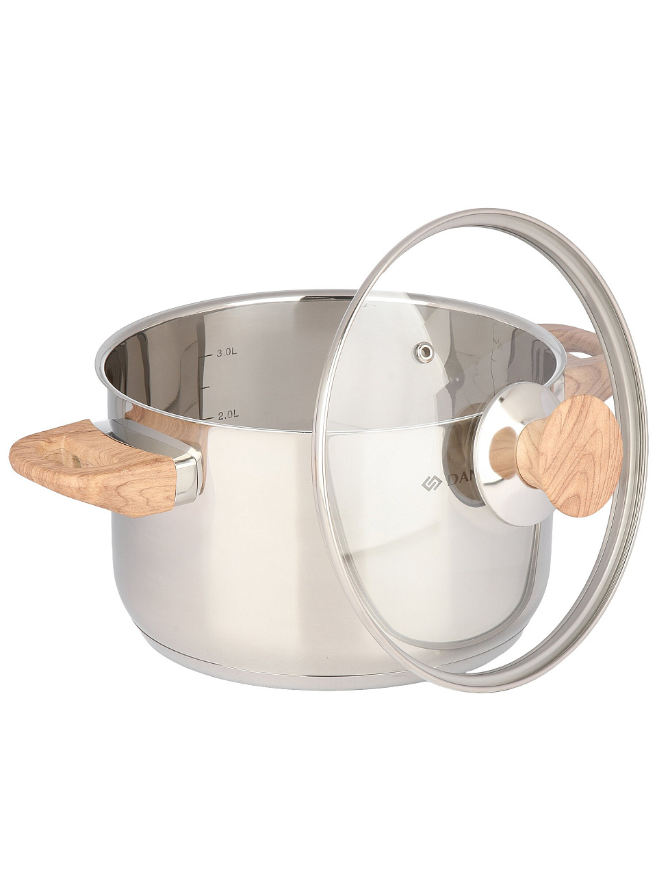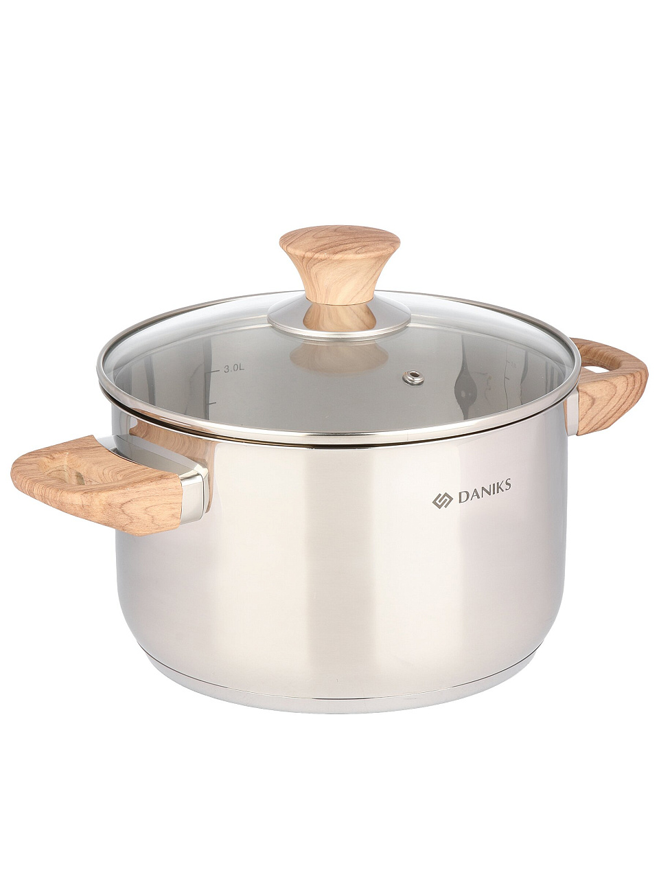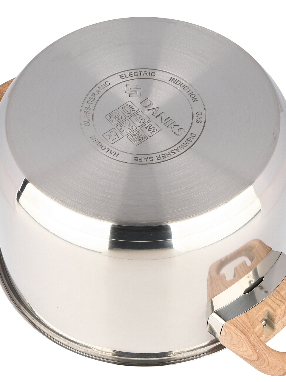 Кастрюля Daniks Осло 3.9 л из нержавеющей стали с крышкой из стекла — универсальное решение для индукционных плит, быстрая готовка без пригорания и легкий уход.
