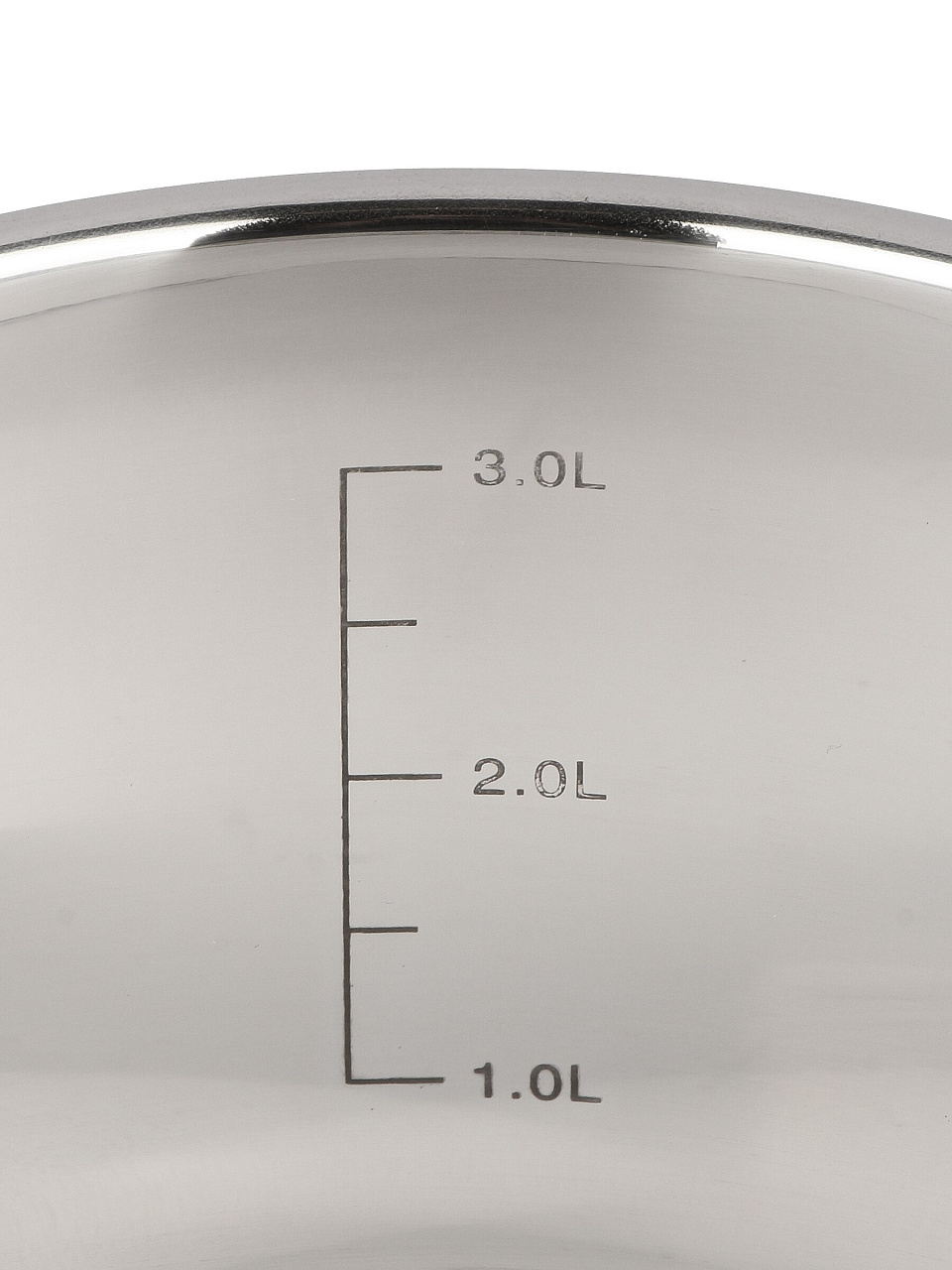 - Толстое дно (2 мм) из нержавеющей стали марки 430 равномерно распределяет тепло, предотвращая пригорание и сохраняя вкус блюд