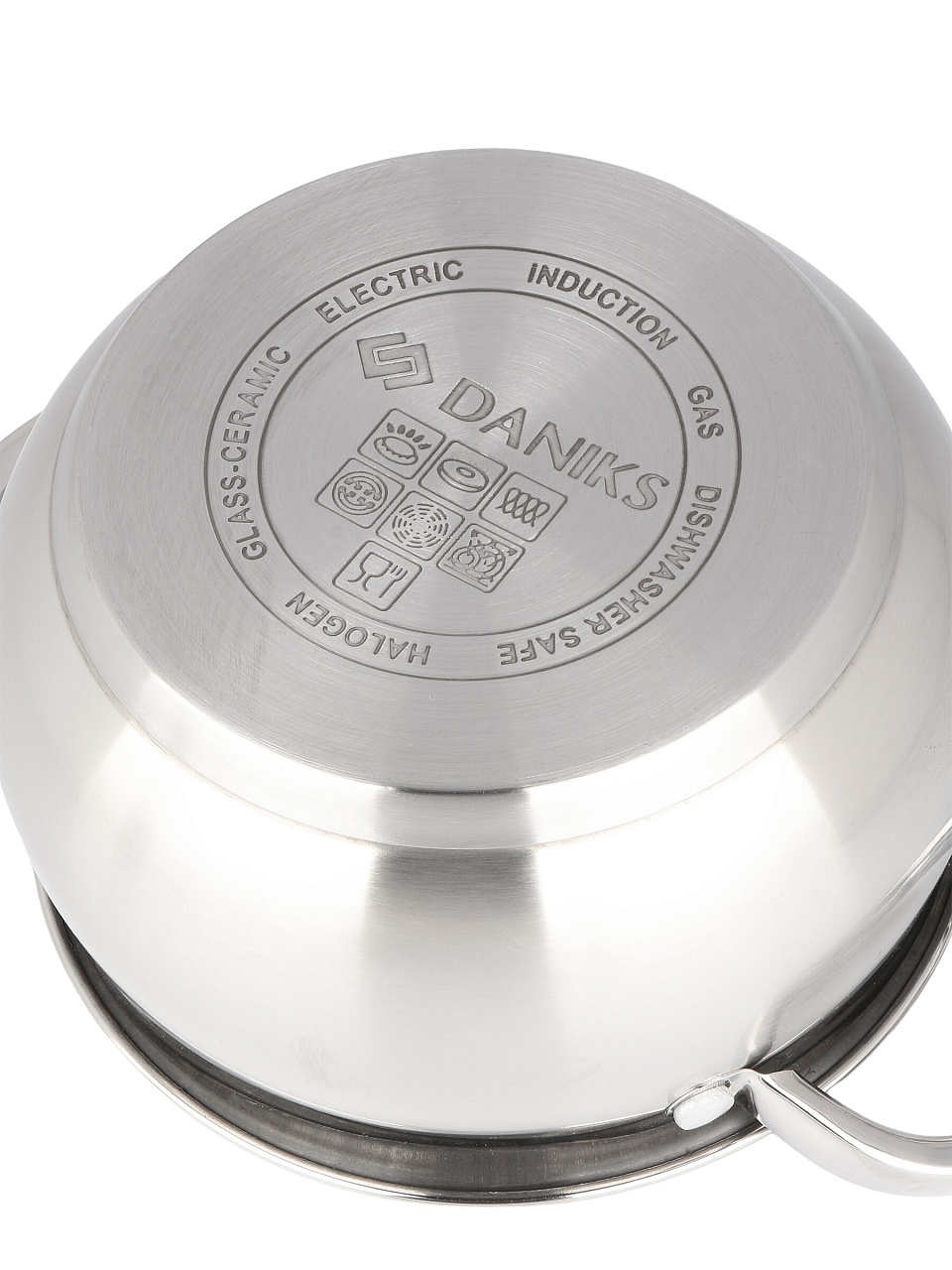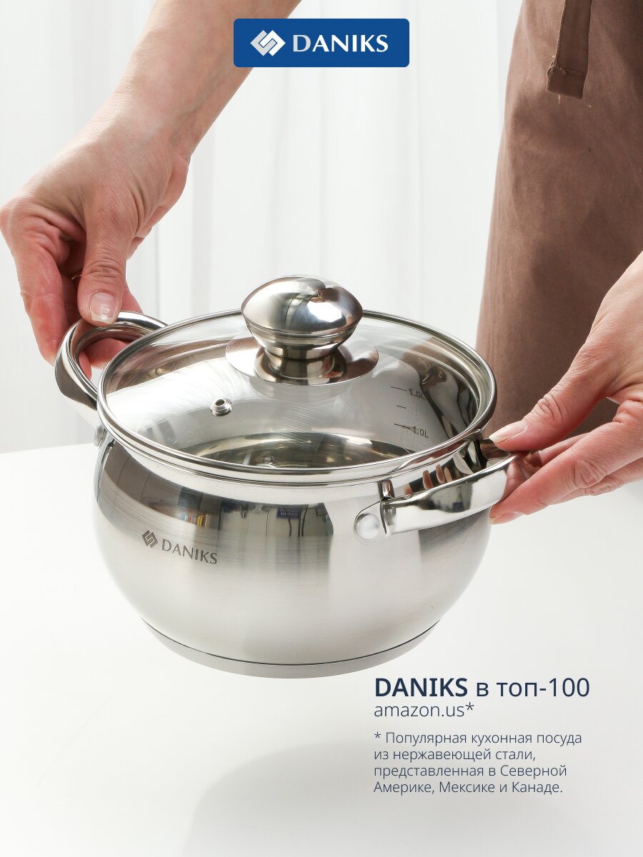 Кастрюля из нержавеющей стали Daniks 1.9 л с крышкой — универсальное решение для индукции, газа и стеклокерамики. Надёжность, мерная шкала, выгодная цена.