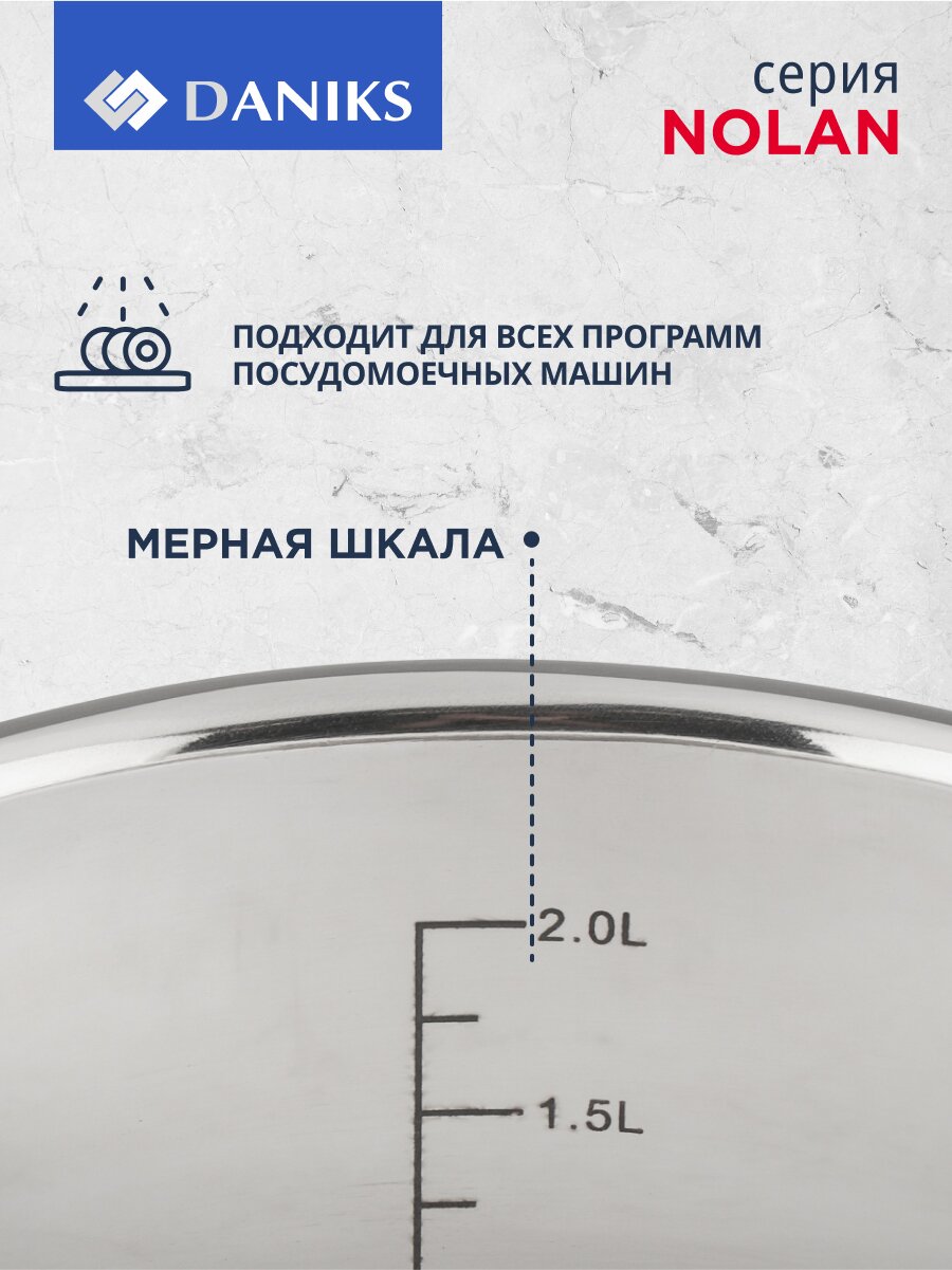 Кастрюля Daniks Нолан 2,6 л из нержавеющей стали: долговечность, универсальность, идеальный выбор для индукции и любых плит по выгодной цене.