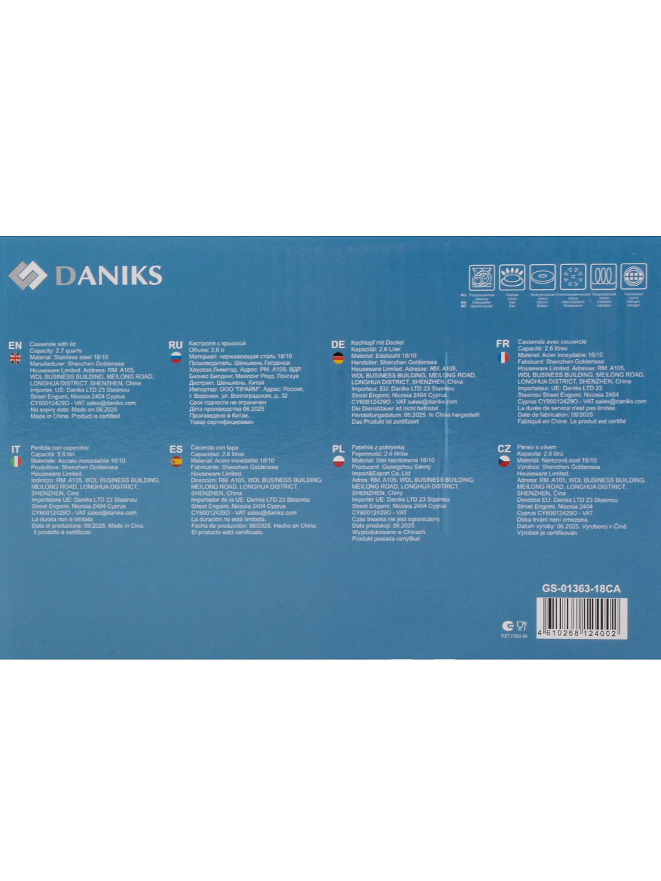 Вы можете приобрести «Кастрюля нержавеющая сталь, 2.6 л, крышка стекло, сталь 304, Daniks, Нолан, GS-01363-18CA, индукция» и другие товары в нашем интернет-магазине в Казани по низким ценам и с бесплатным самовывозом.