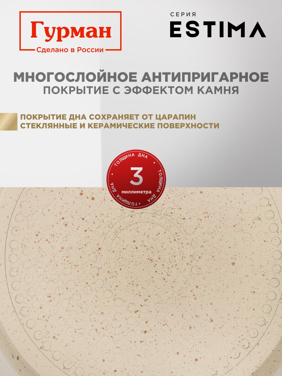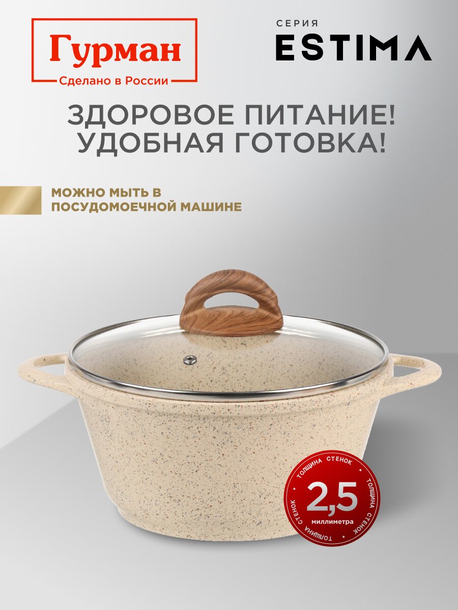 Кастрюля 2 л Гурман Estima: антипригарное покрытие, подходит для индукции, стеклянная крышка, гарантия 36 мес. — идеальный выбор для кухни и дачи