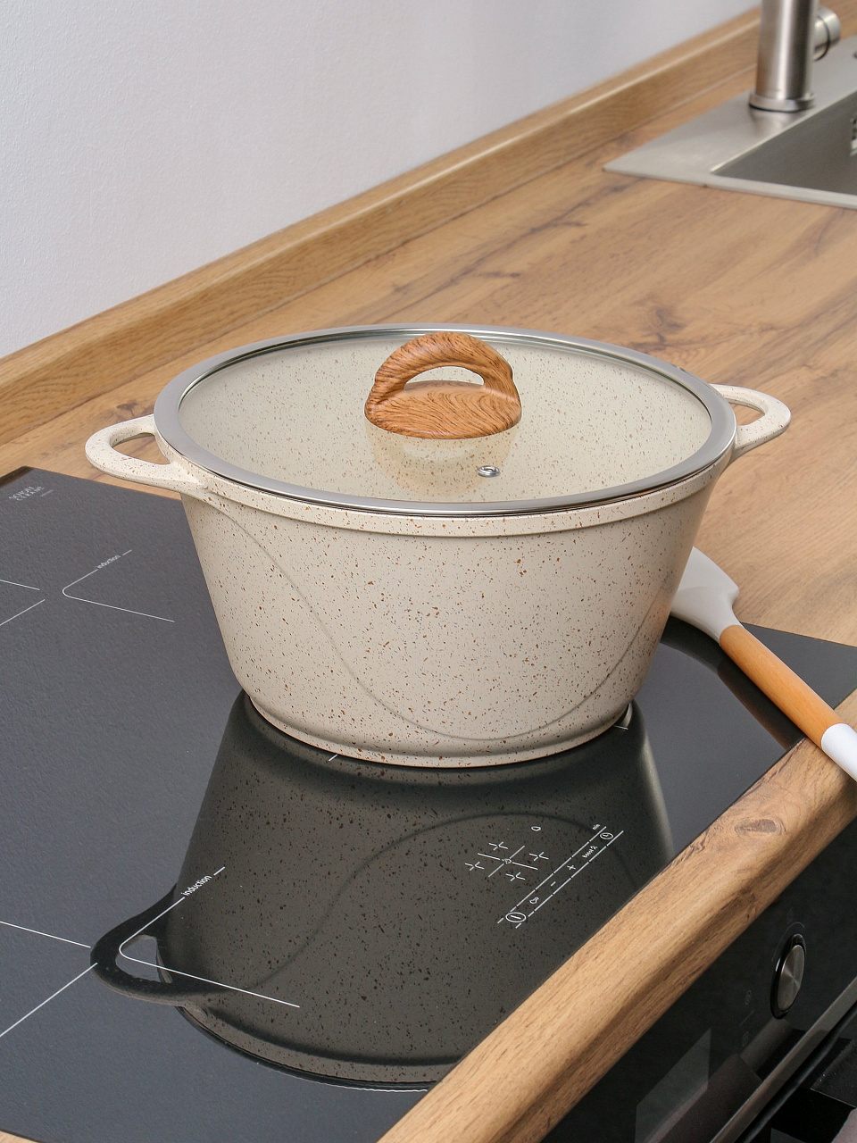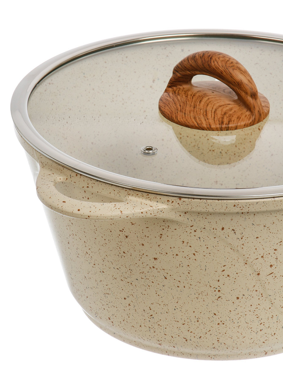 Кастрюля 5 л Гурман Estima с мраморным антипригарным покрытием и стеклянной крышкой: идеальный выбор для индукции, дома и дачи — готовьте без хлопот и пригорания.
