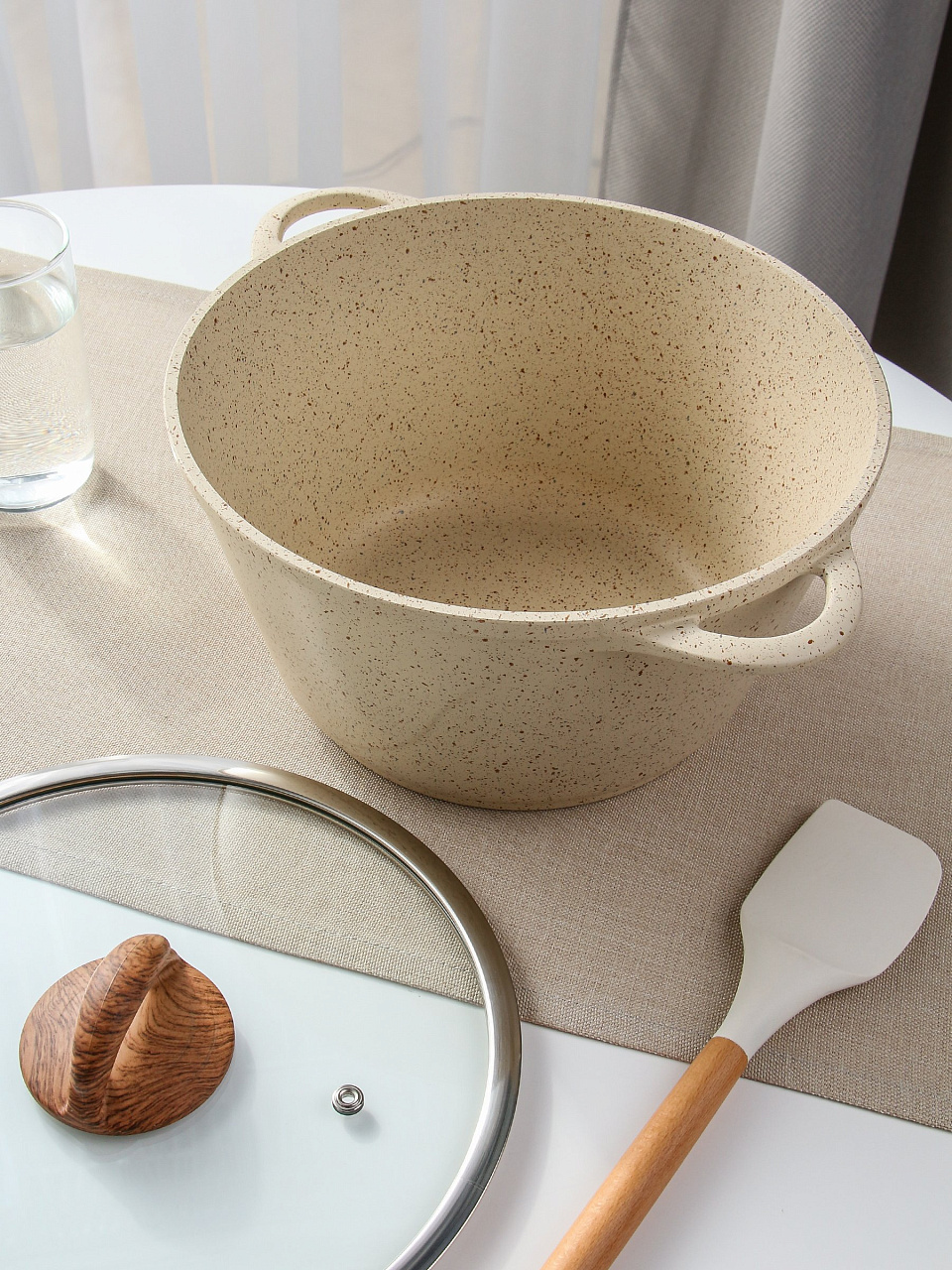 Кастрюля алюминиевая с антипригарным покрытием Гурман Estima — это современное решение для тех, кто ищет, какую кастрюлю выбрать для ежедневного приготовления супов, плова, макарон или каши. Благодаря прочному корпусу из алюминия и мраморному покрытию, пища не пригорает и сохраняет натуральный вкус. Стеклянная крышка с выпускным клапаном позволяет контролировать процесс готовки, а толстое дно гарантирует равномерный прогрев без горячих пятен.