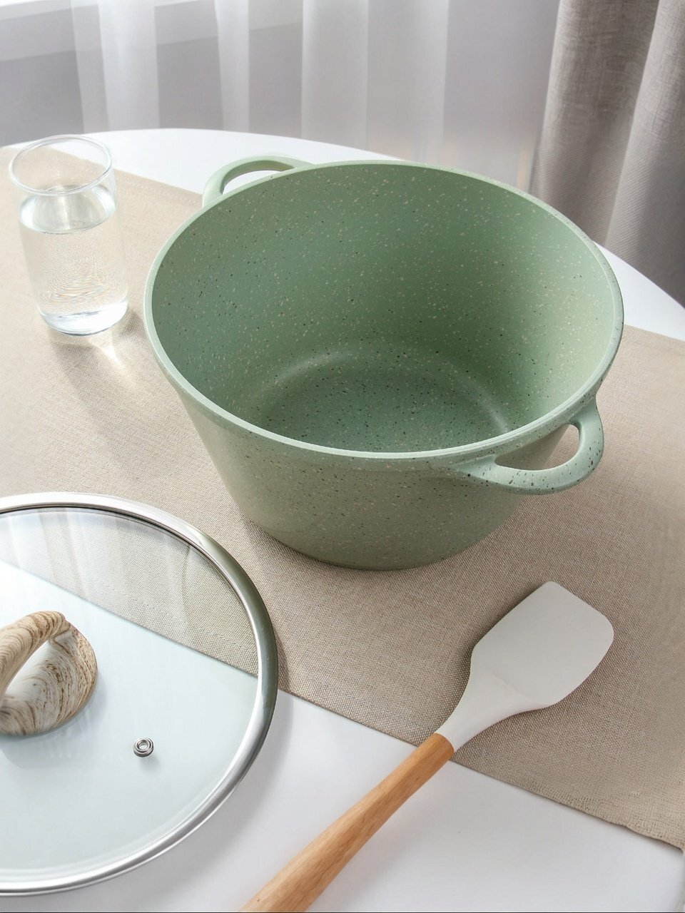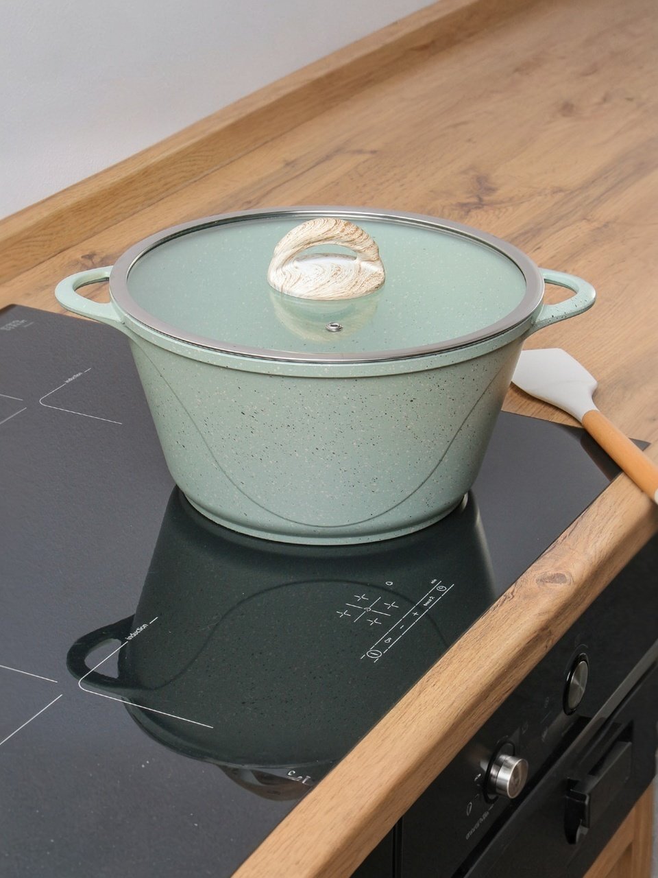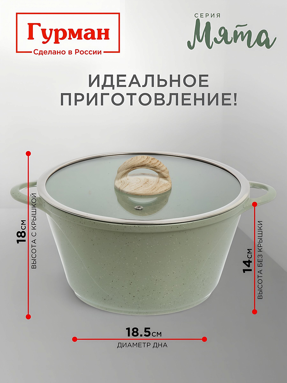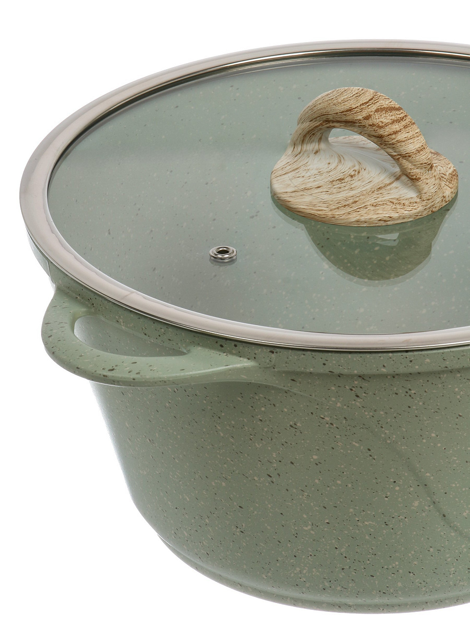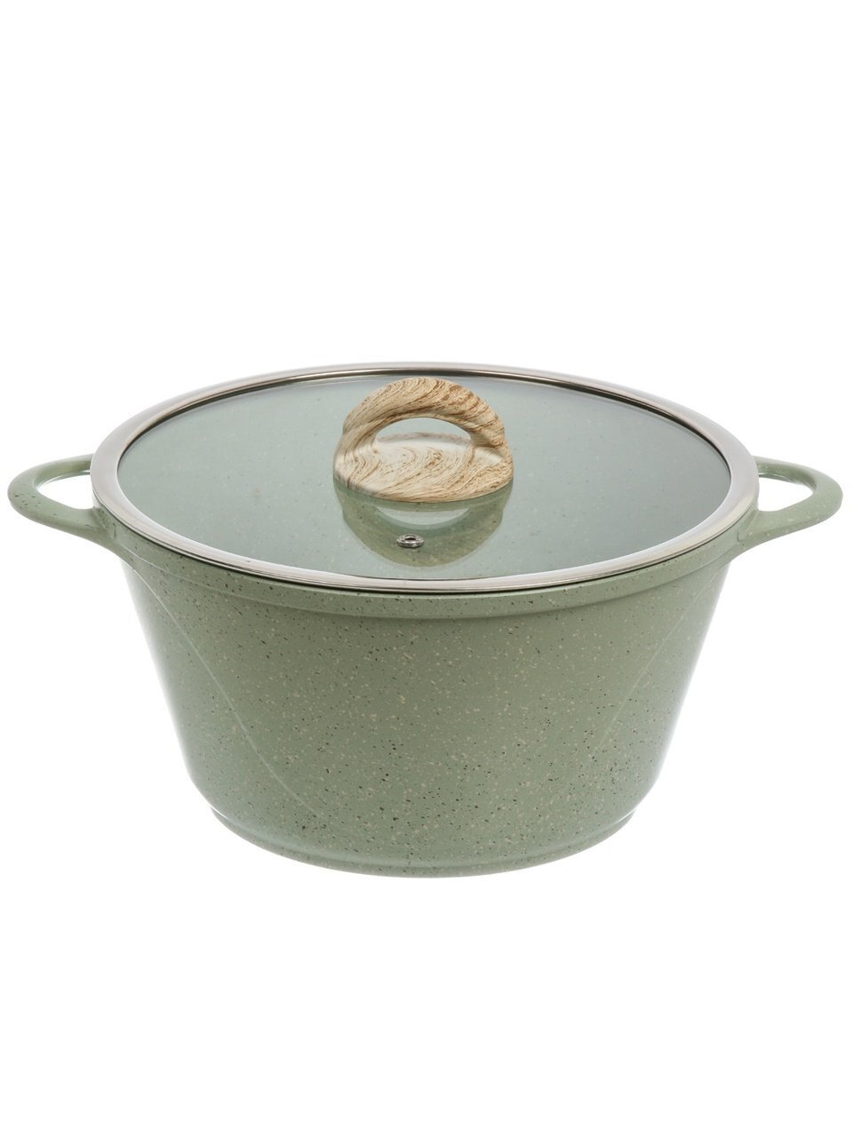 Кастрюля 5 л Гурман Мята — антипригарная алюминиевая кастрюля с гранитным покрытием и стеклянной крышкой для индукционных плит: удобно готовить, легко мыть, подходит для любого стиля кухни.