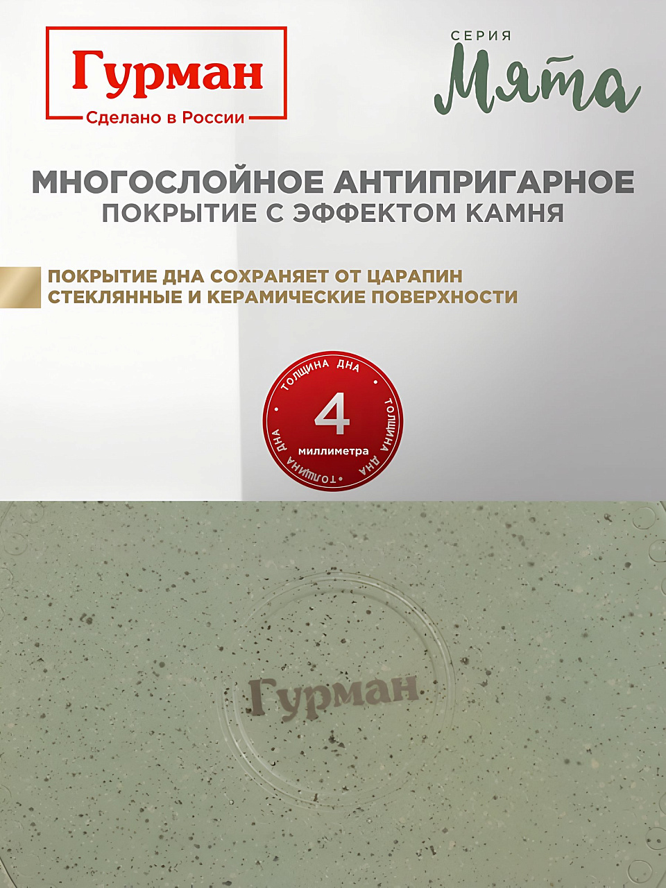 - Гранитное антипригарное покрытие — пища не пригорает, легко отмывается, безопасно для здоровья