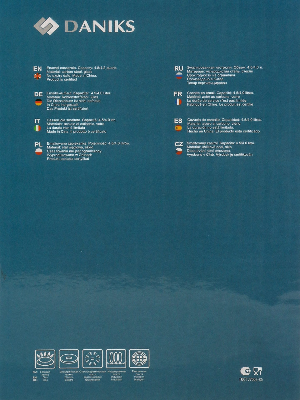 Часто спрашивают: подходит ли эта кастрюля для индукционных плит? Да, дно рассчитано на использование на всех типах плит, включая индукцию. В отличие от аналогов с антипригарным покрытием, эмалированная сталь не боится металлических ложек и не выделяет вредных веществ при нагревании. Как выбрать кастрюлю для семьи? Модель Daniks Elisa на 4 литра оптимальна для приготовления блюд на 3-5 человек, её легко переносить благодаря весу 1,74 кг и удобным ручкам. Кастрюля не подходит для мытья в посудомоечной машине, но легко очищается вручную.