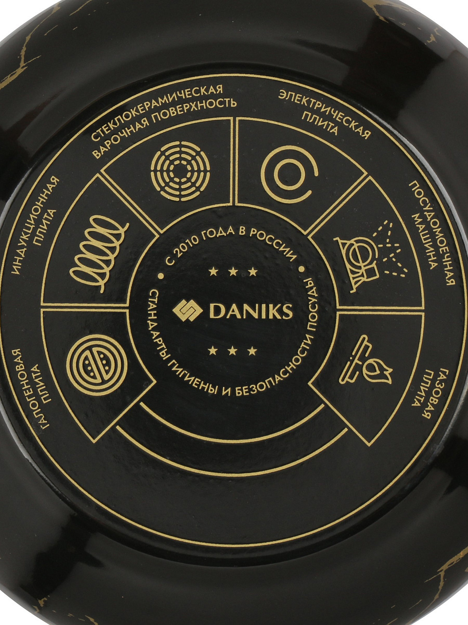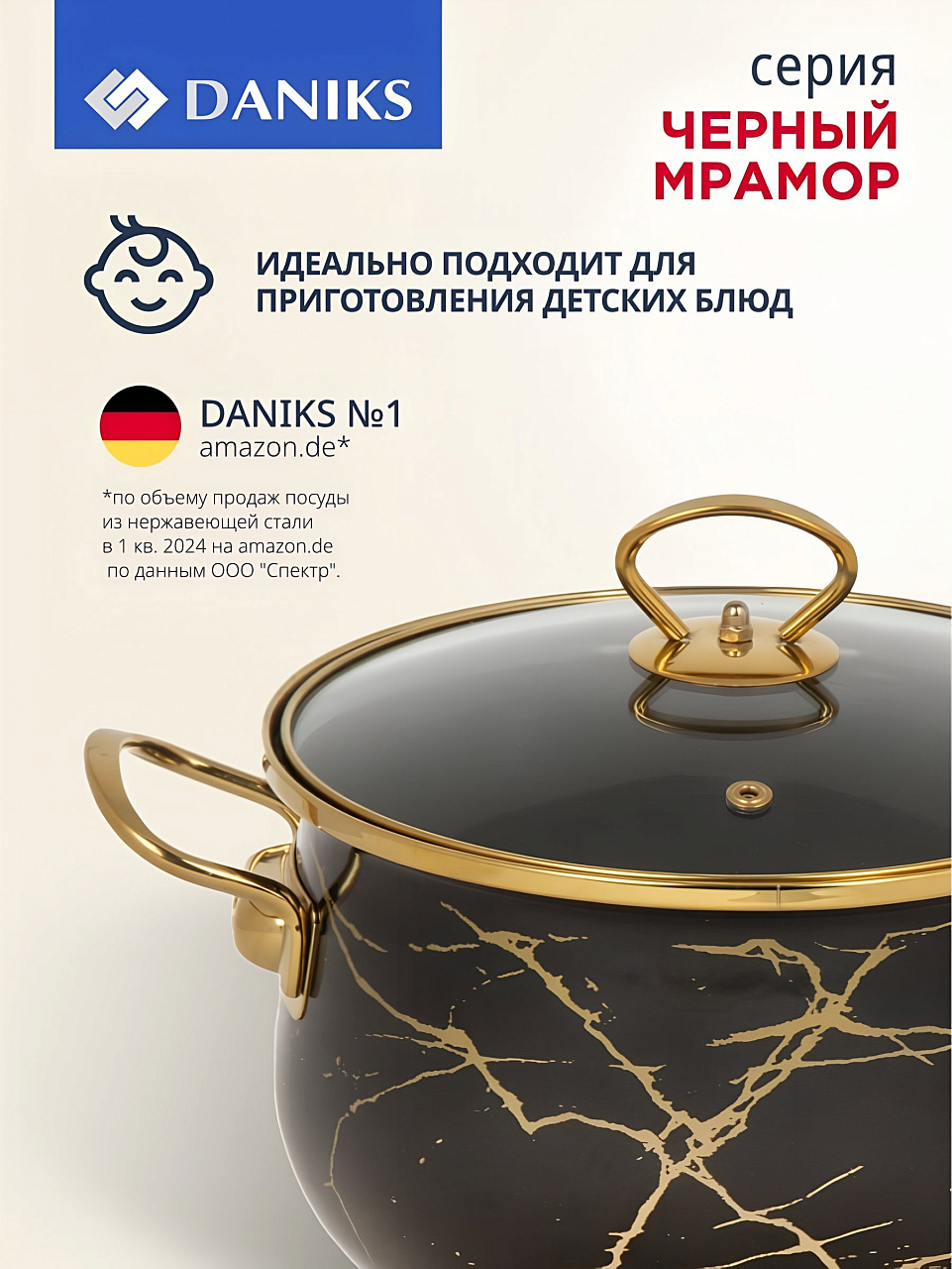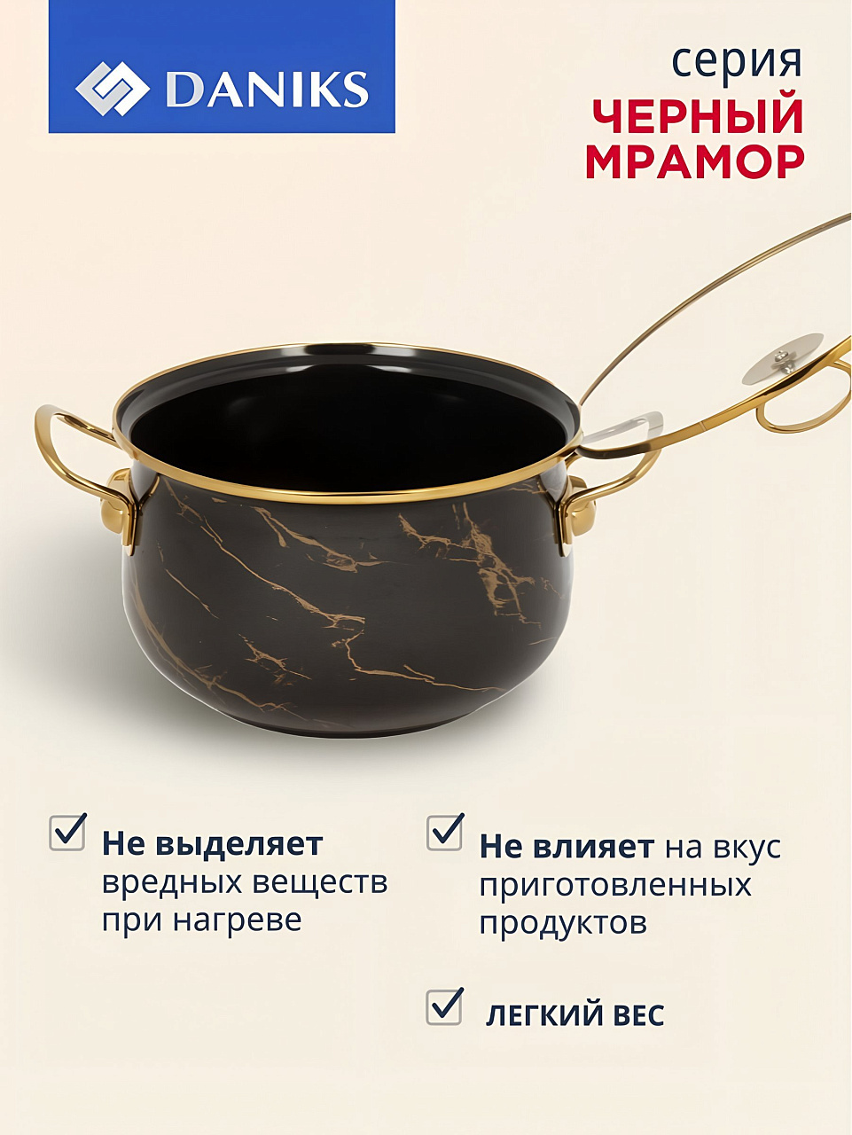Кастрюля эмалированная Daniks 4 л, Черный мрамор — долговечная посуда для индукции и любых плит. Готовьте супы, каши, макароны без хлопот и лишних затрат!