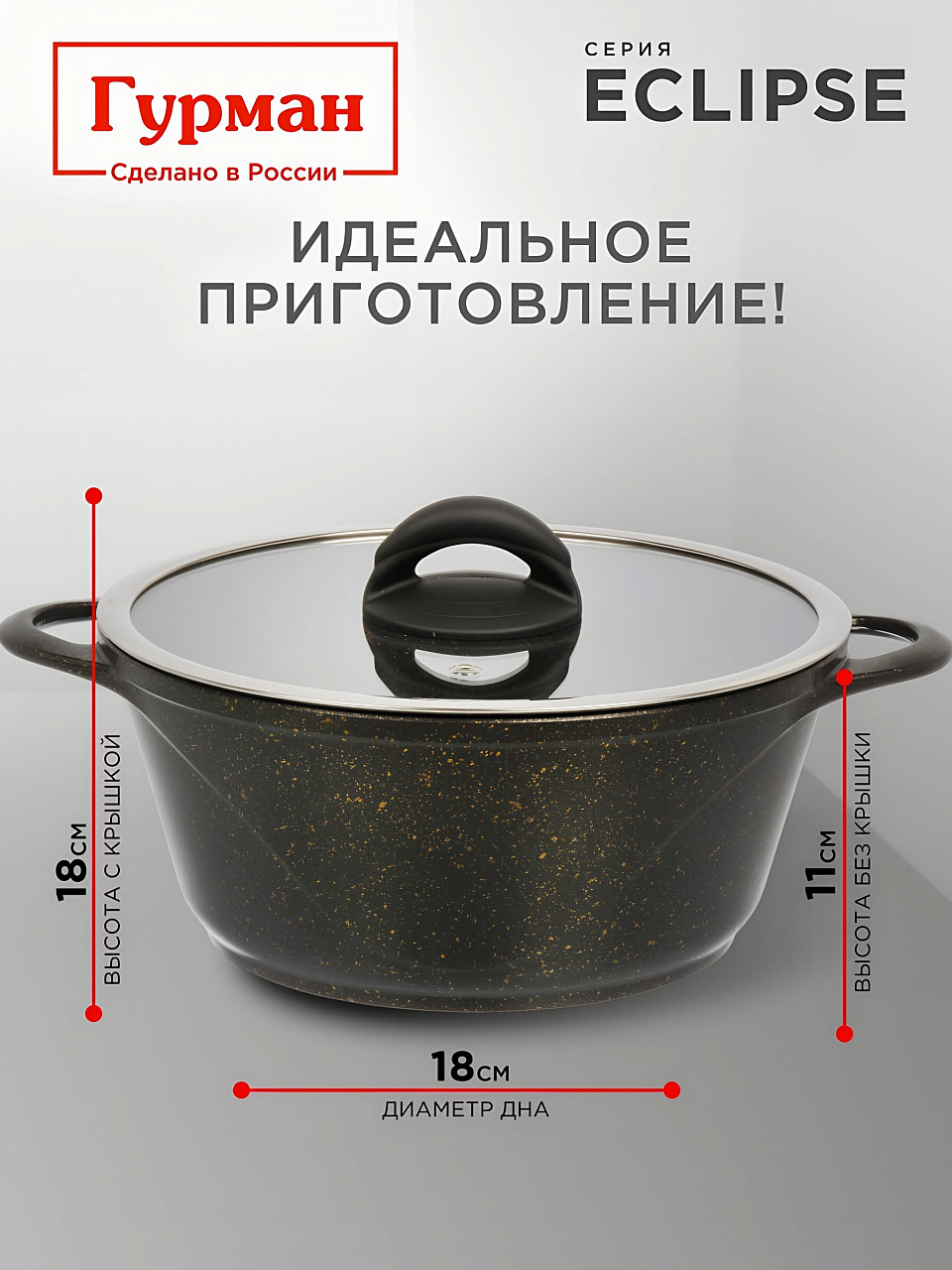 Кастрюля алюминиевая 3 л с гранитным антипригарным покрытием и стеклянной крышкой: идеальный выбор для индукции, дома и дачи. Гурман Eclipse — надежно, удобно, выгодно.