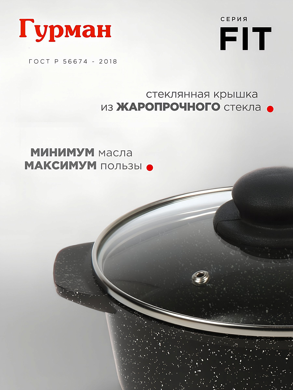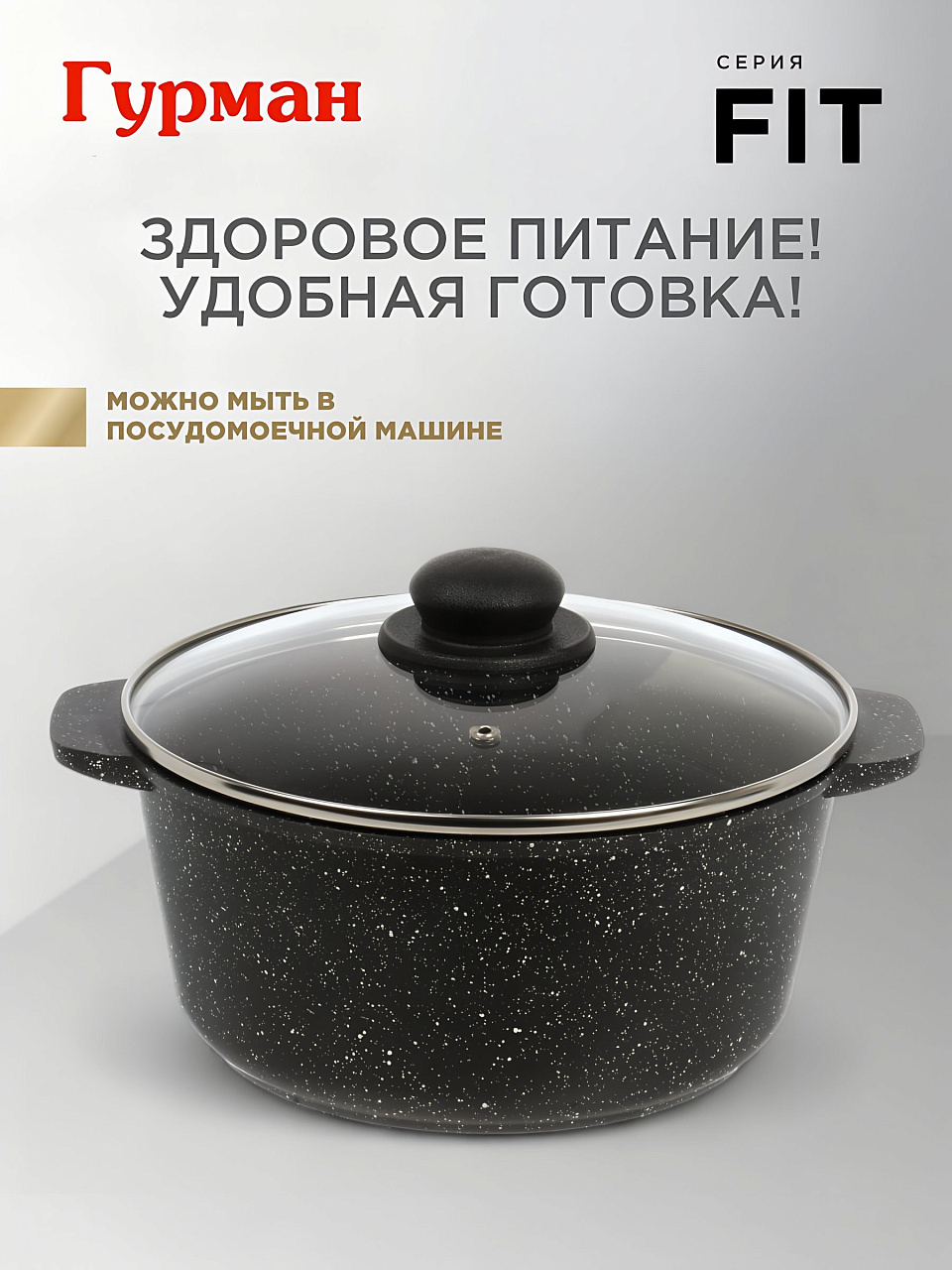 Кастрюля 4 л Гурман FIT с антипригарным гранитным покрытием и стеклянной крышкой — долговечность, лёгкий уход и готовка без пригорания для всей семьи.