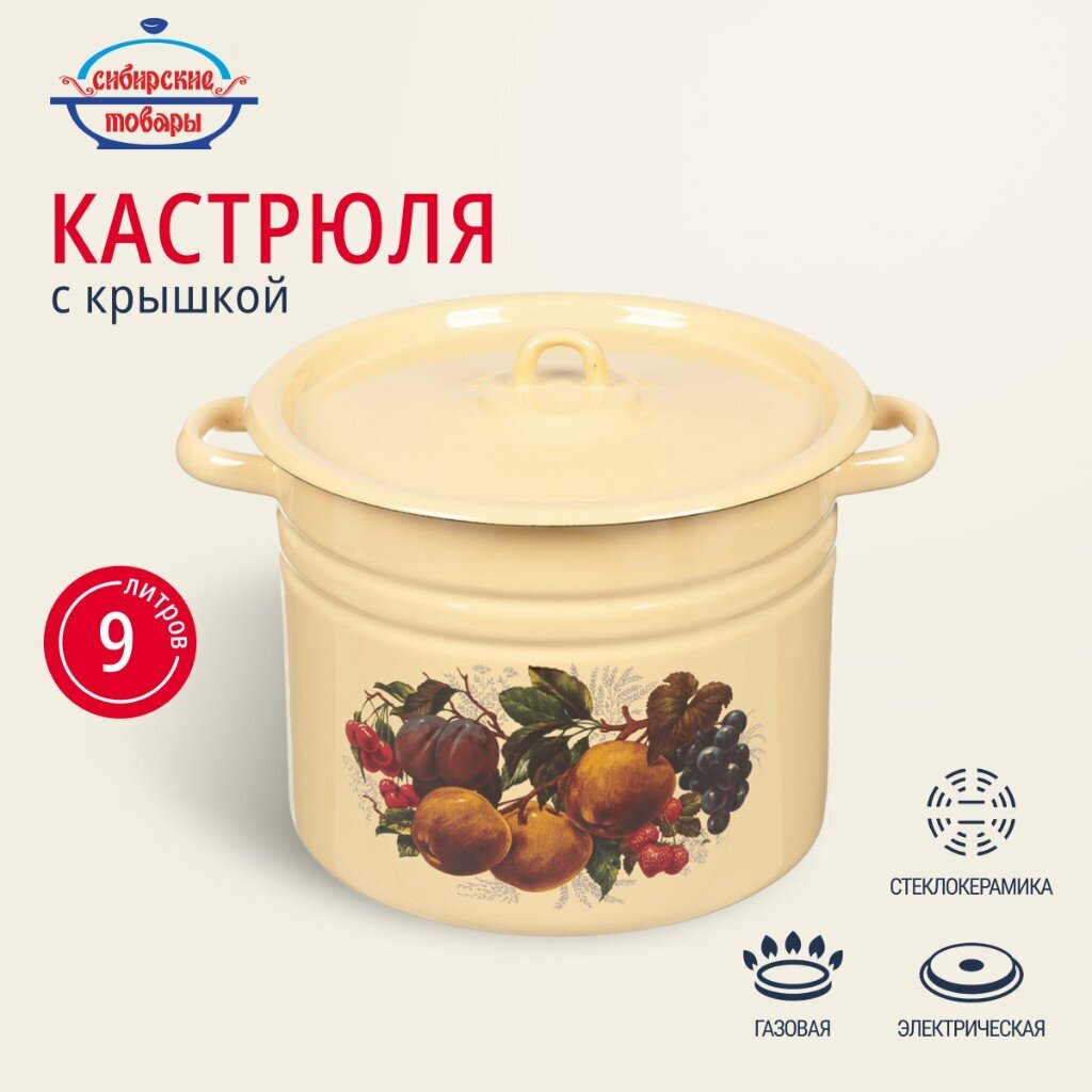 Эмалированная кастрюля из стали 9 л с крышкой: оптимальный выбор для большой семьи, дачи и заготовок. Лёгкая, вместительная, устойчива к коррозии, не впитывает запахи.