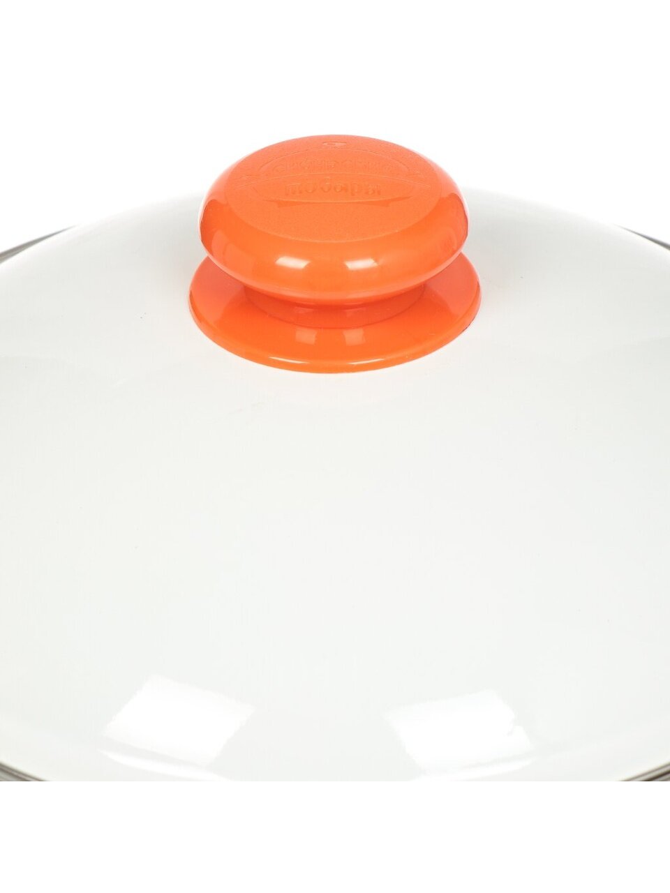 - Универсальность: подходит для всех типов плит, включая индукционные, благодаря плоскому дну и эмалированному покрытию.