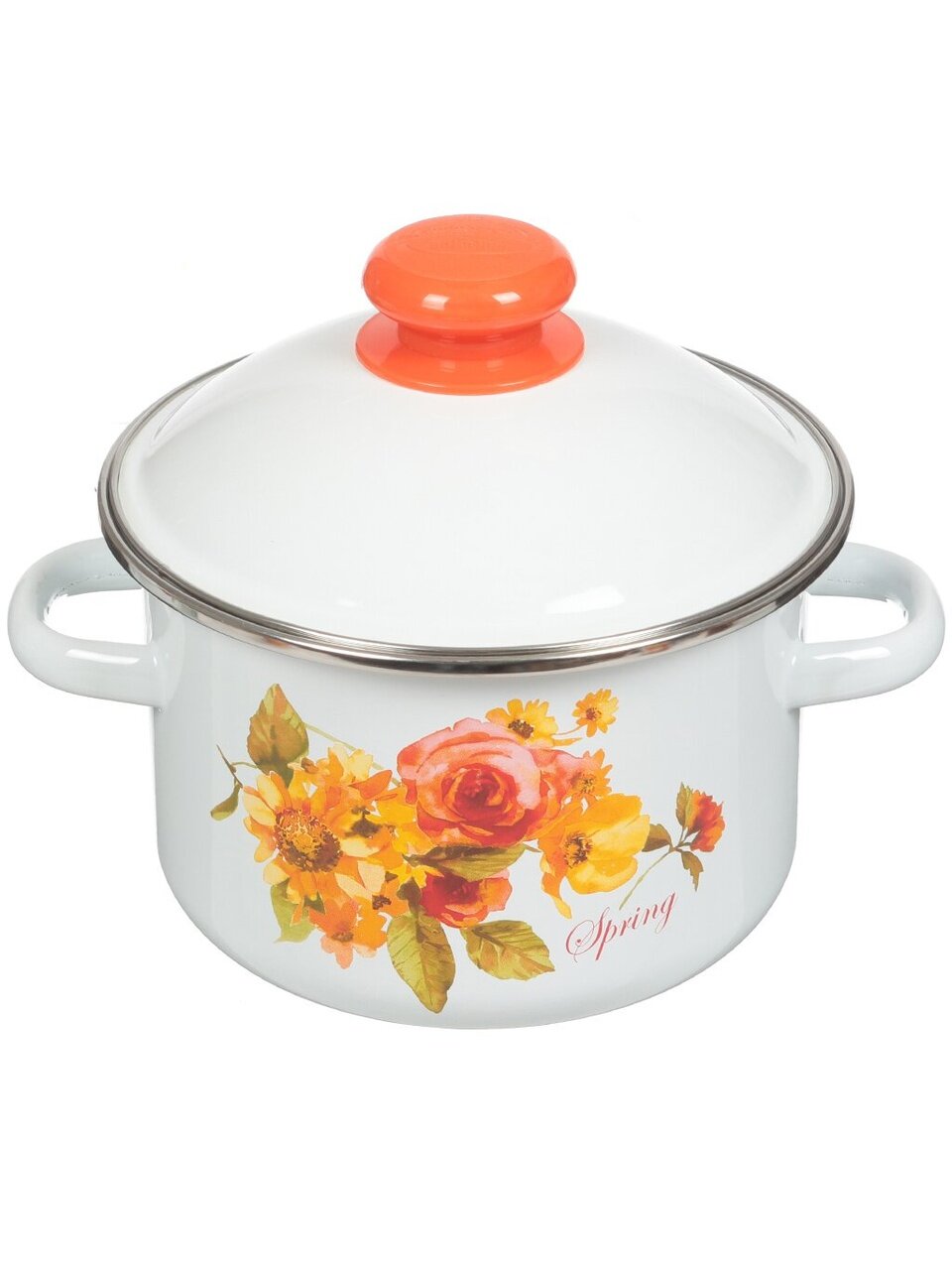 Эмалированная кастрюля 2 л с крышкой из стали — универсальное решение для индукционных плит, легкая, долговечная, идеальна для дома и дачи.