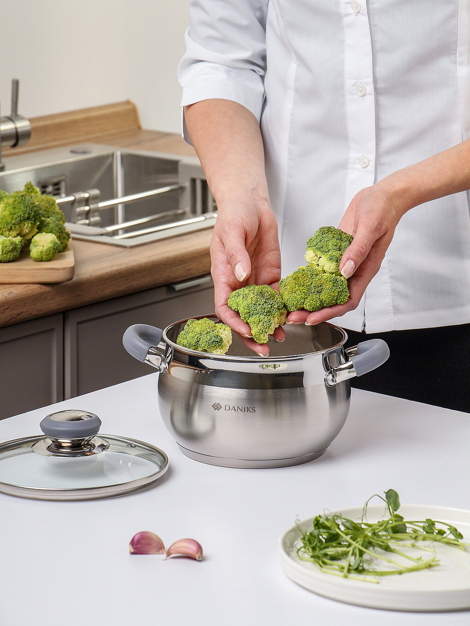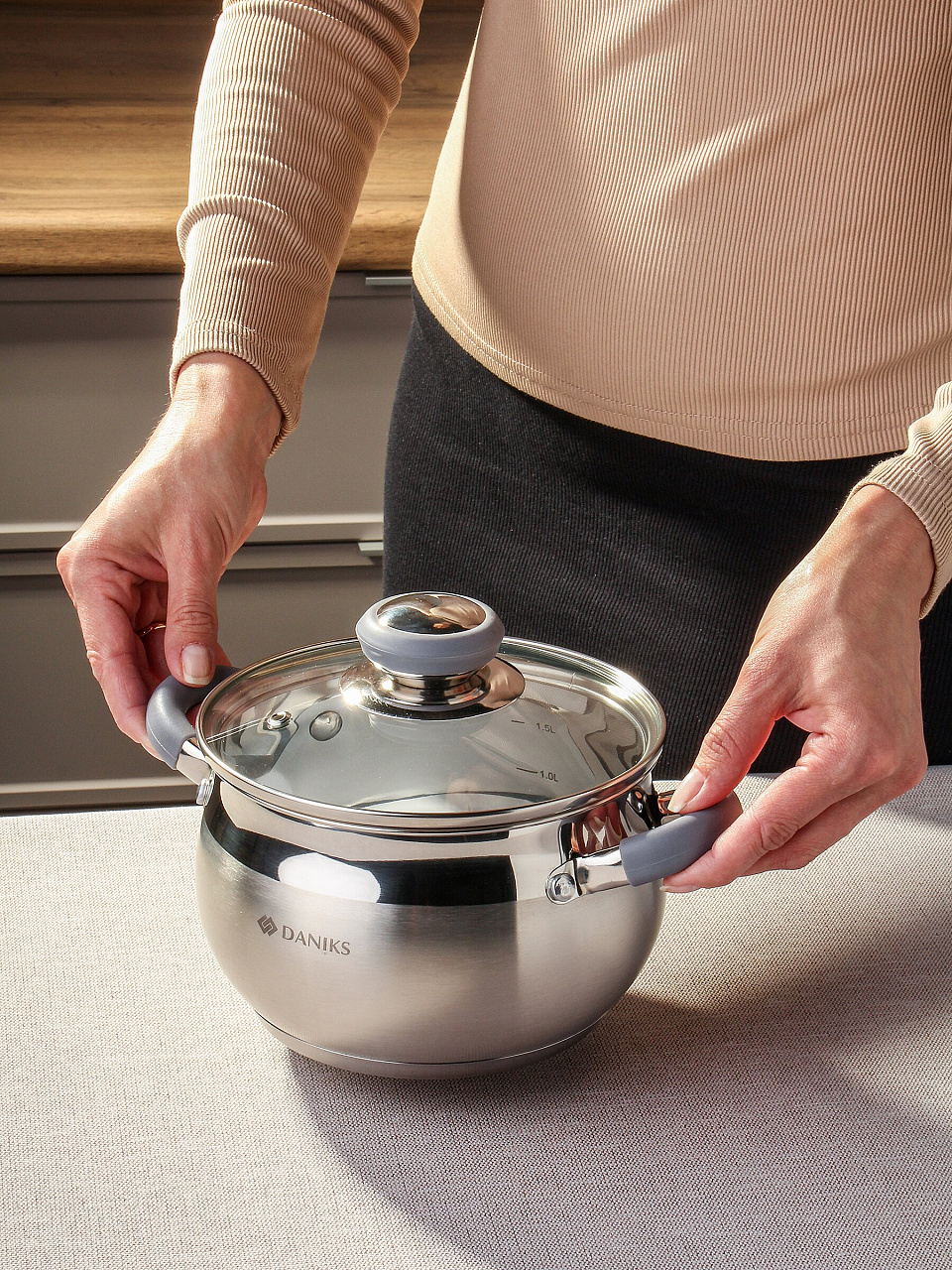 Многие спрашивают: чем отличается кастрюля Daniks от аналогов? В отличие от бюджетных моделей, здесь нет эмалевого покрытия, а корпус из нержавеющей стали устойчив к коррозии и механическим повреждениям. Можно мыть в посудомоечной машине — экономия времени гарантирована. Мерная шкала внутри – точное дозирование воды без лишней посуды.