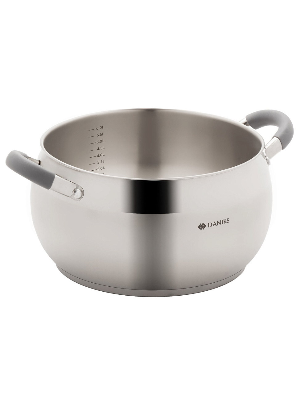 Кастрюля Daniks Модерн серый 6.5 л: идеальный выбор для семьи и дачи — нержавеющая сталь 201, стеклянная крышка, подходит для индукции. Гарантия 12 мес.