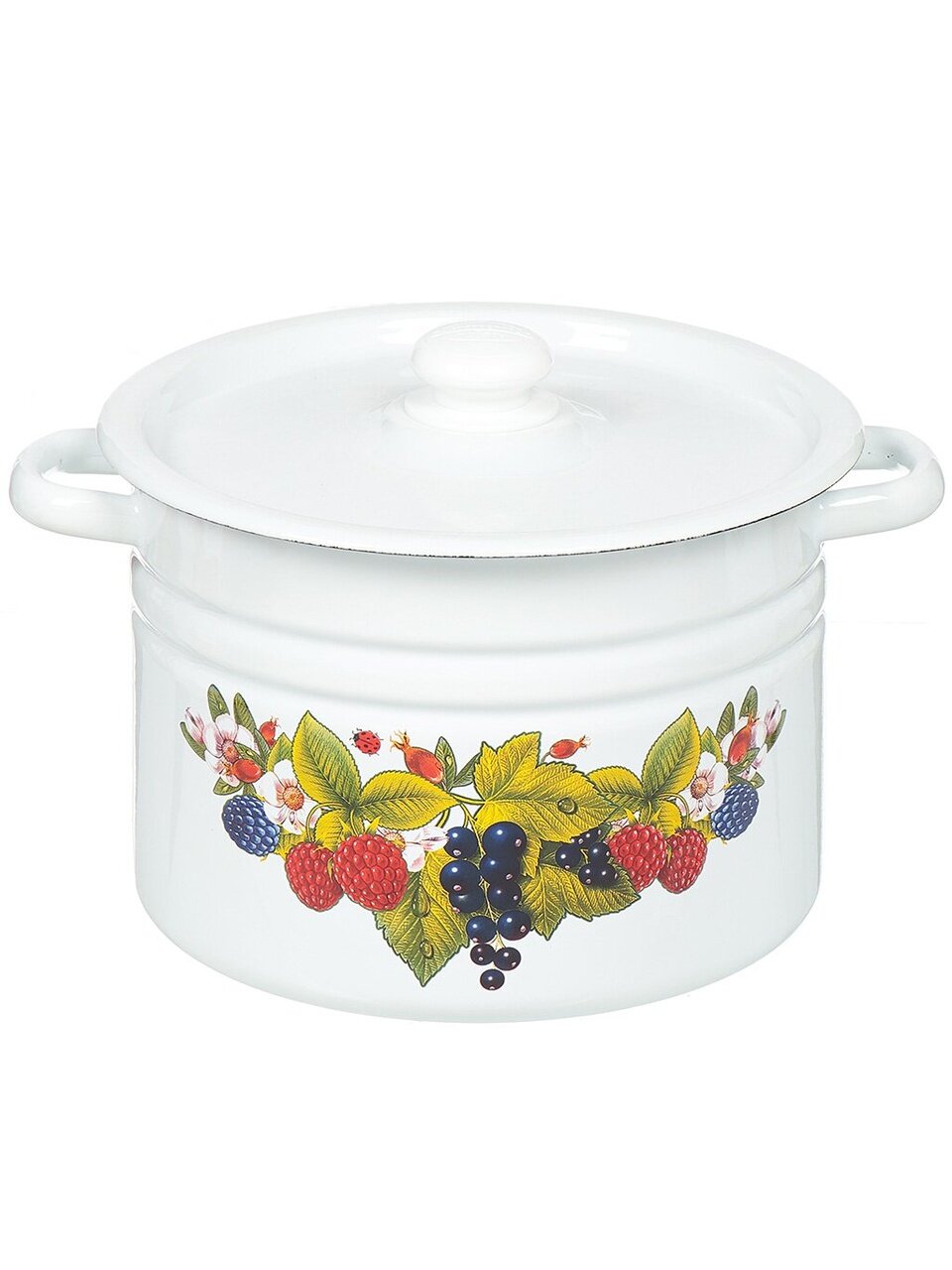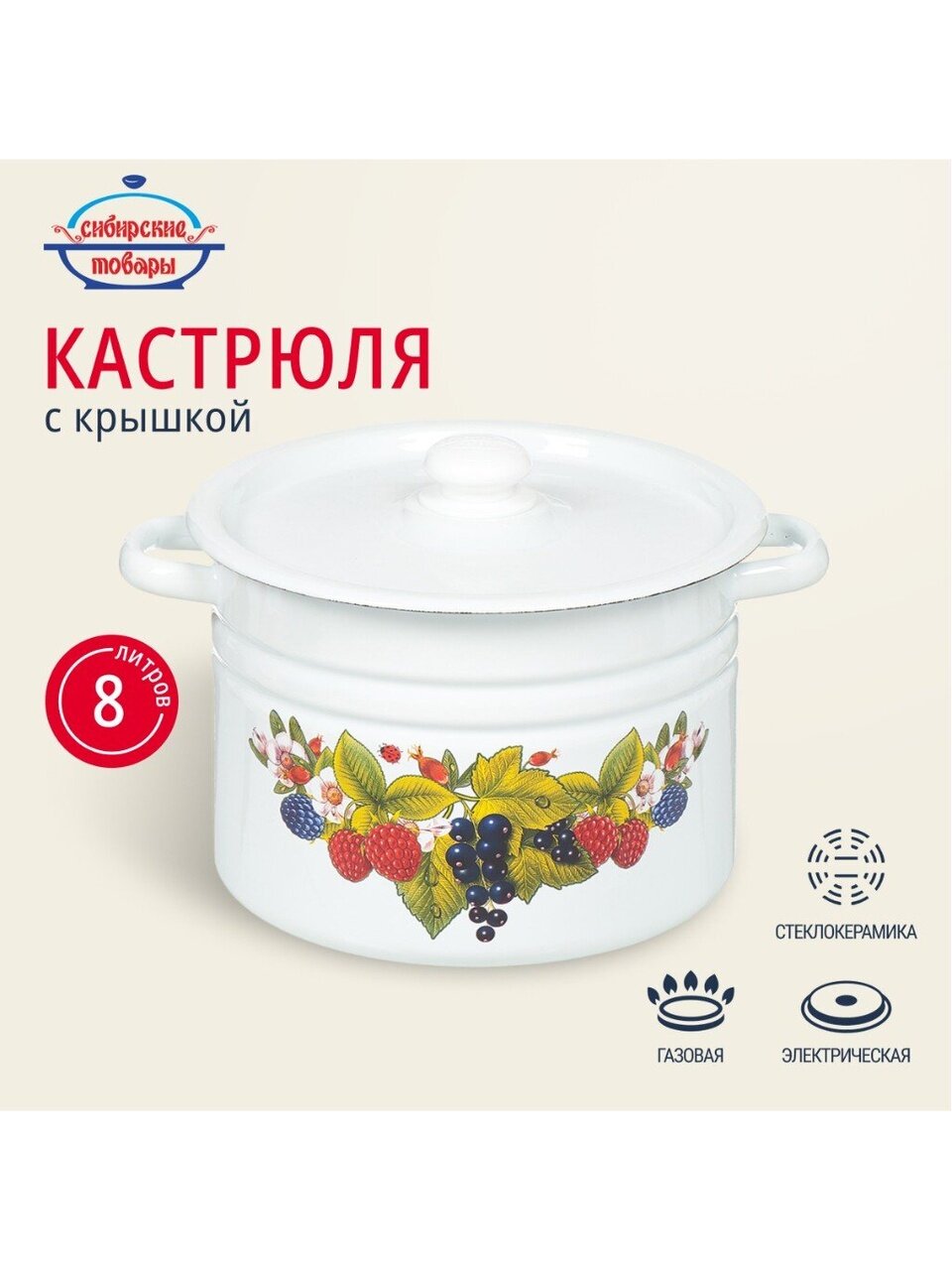 Эмалированная кастрюля 8 л с декором — универсальное решение для семьи: долговечная сталь, стильный дизайн, удобно мыть, выгодно купить для дома и дачи.
