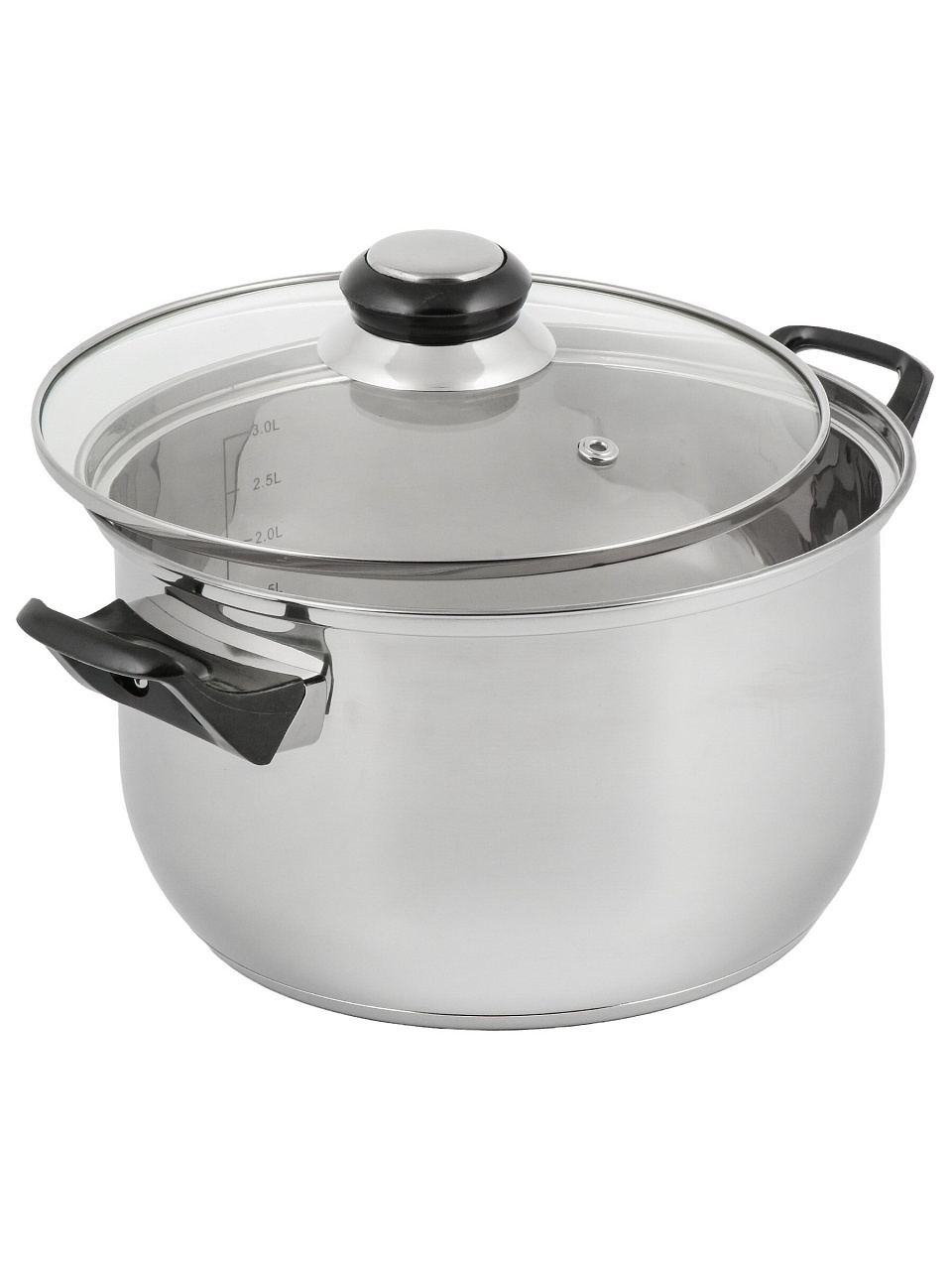 Кастрюля из нержавеющей стали 3.8 л с мерной шкалой и стеклянной крышкой — оптимальный выбор для семьи: удобно готовить суп, макароны, кашу дома и на даче.