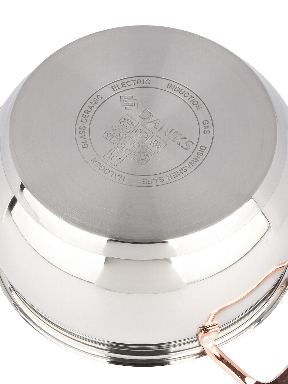 Кастрюля Daniks Карлин 2.5 л из нержавеющей стали с капсульным дном и стеклянной крышкой — оптимальный выбор для дома и дачи: готовьте быстро и безопасно на любой плите.