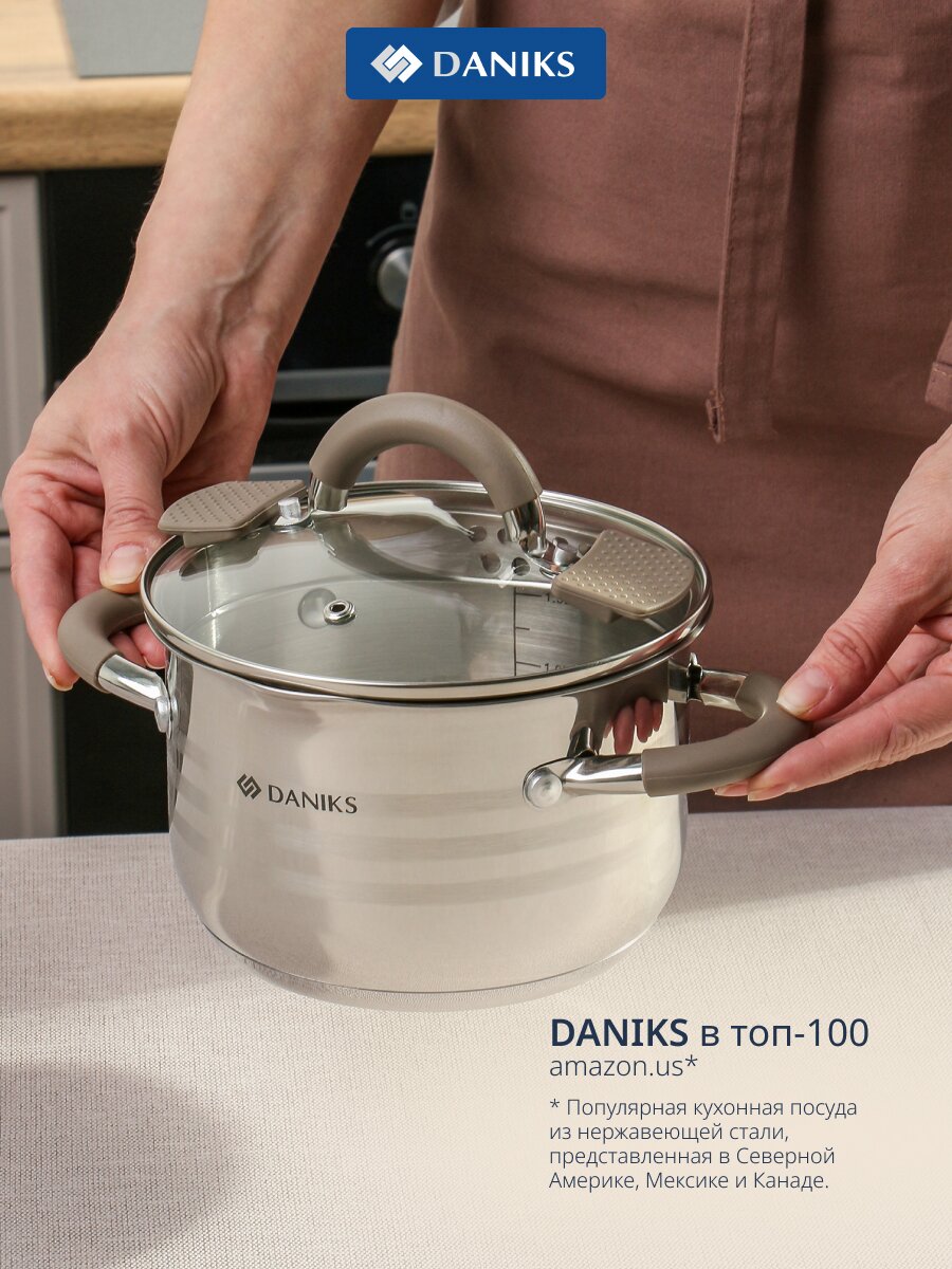 Кастрюля Daniks Нара 2,1 л из нержавеющей стали с капсульным дном и стеклянной крышкой: идеальный выбор для индукции и повседневной готовки без хлопот.