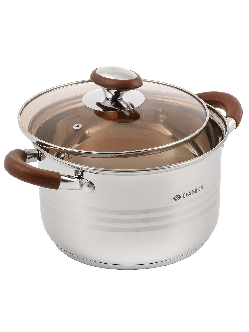 Кастрюля Daniks Веллингтон 3.8 л из нержавеющей стали с капсульным дном: идеальный выбор для индукционных плит, удобная мерная шкала, стеклянная крышка.