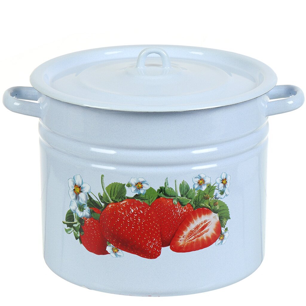 Чем отличается эта кастрюля от аналогов? В отличие от алюминиевых или нержавеющих моделей, эмалированная сталь не вступает в реакцию с продуктами и не меняет их вкус. Кастрюля не подходит для индукционных плит, но совместима с газовыми, электрическими и стеклокерамическими плитами. Как использовать кастрюлю объемом 14 литров? Она удобна для домашних заготовок, варки на большую компанию, а также для праздничных мероприятий. Декор и выбор цвета (зеленый рябчик, палевый, серо-голубой) делают ее отличным подарком.