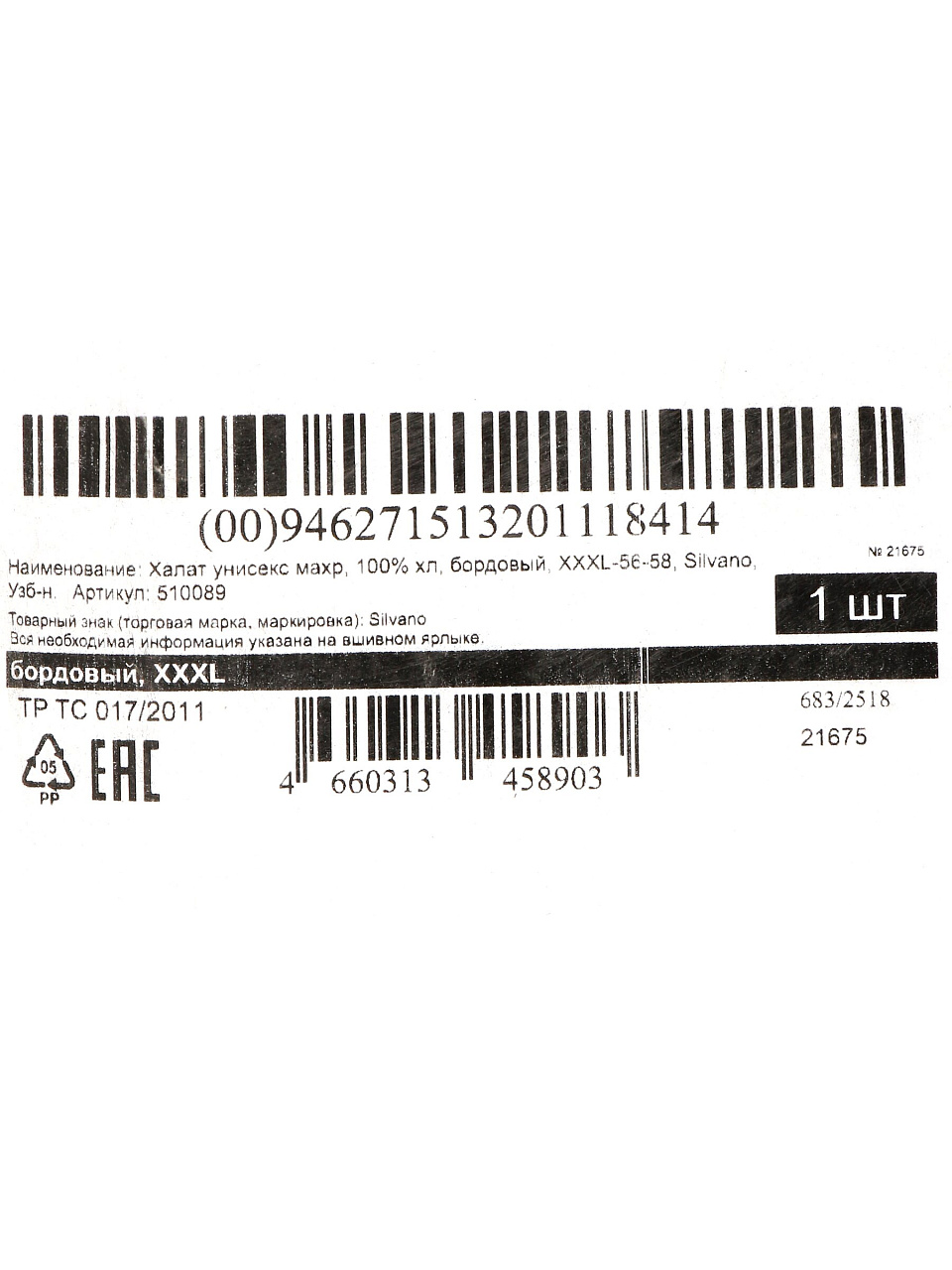Вы можете приобрести «Халат унисекс, махровый, 100% хлопок, бордовый, XXXL, 56-58, Silvano» и другие товары в нашем интернет-магазине в Ельце по низким ценам и с бесплатным самовывозом.