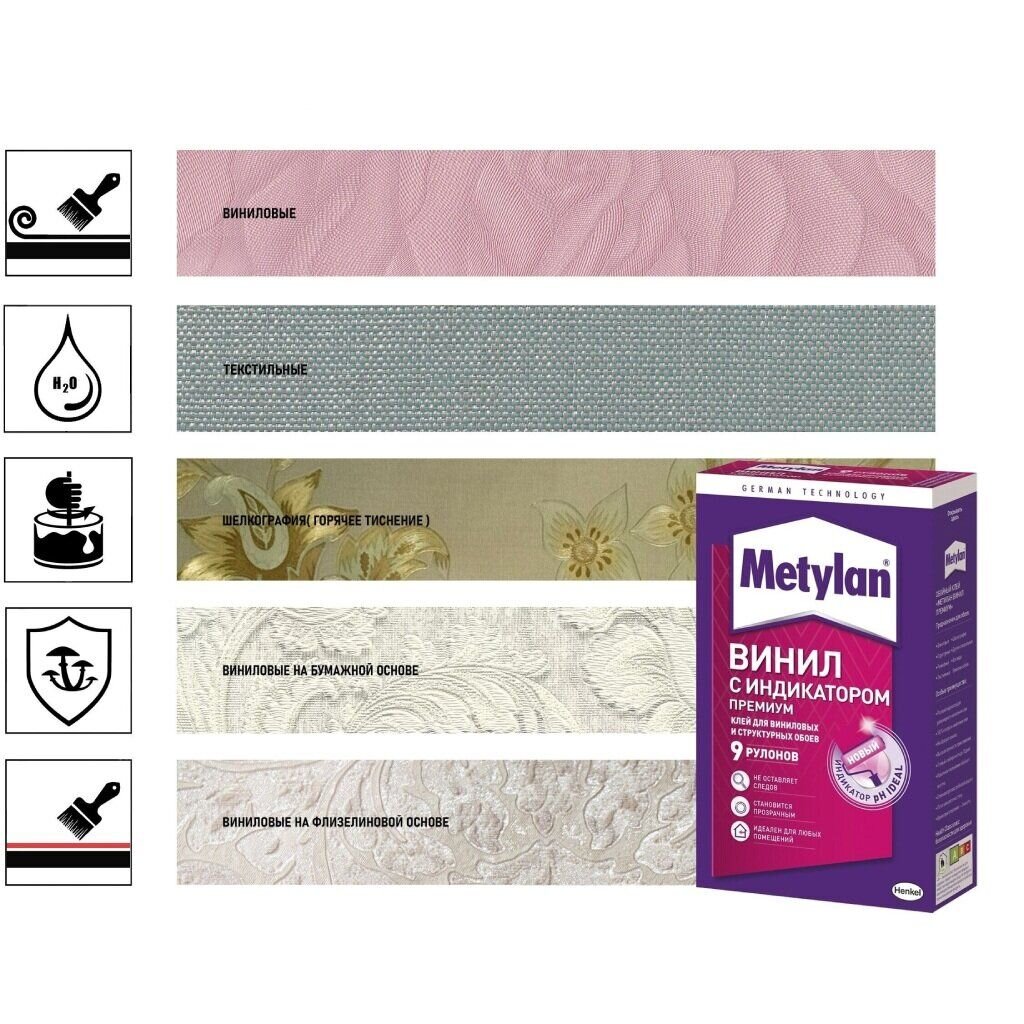 Обойный клей Metylan — это простой в использовании, высококачественный состав. Он применим для поклейки всех видов виниловых и структурных обоев. Содержит цветовой индикатор, позволяющий отслеживать равномерность нанесения. Клей не мешает скользить наклеиваемому материалу во время подгонки, что позволяет легко стыковать полотна. При работе следует соблюдать рекомендации производителей обоев и покрытий.